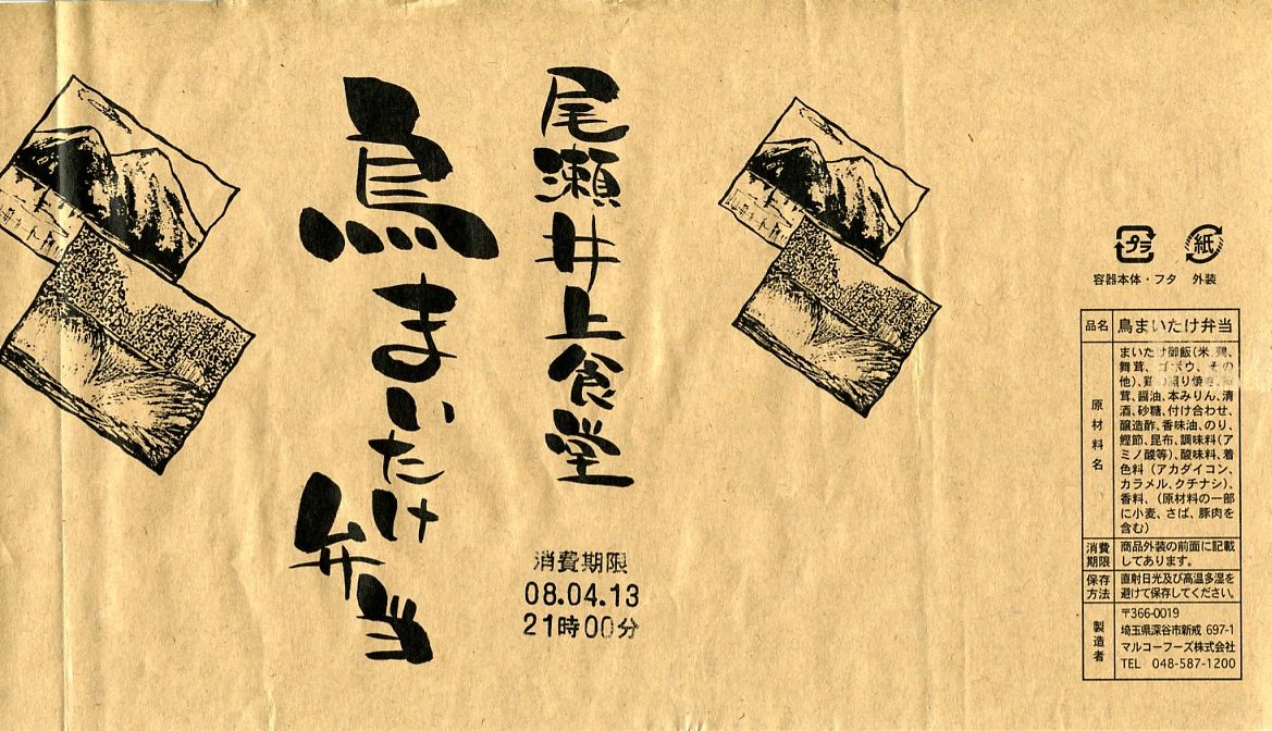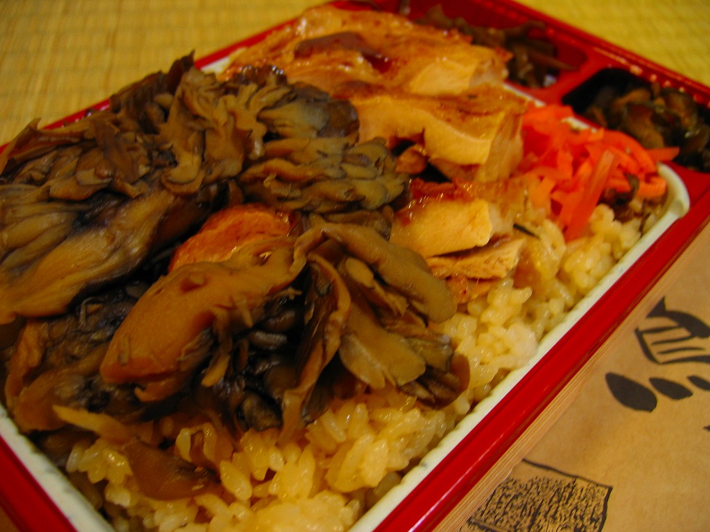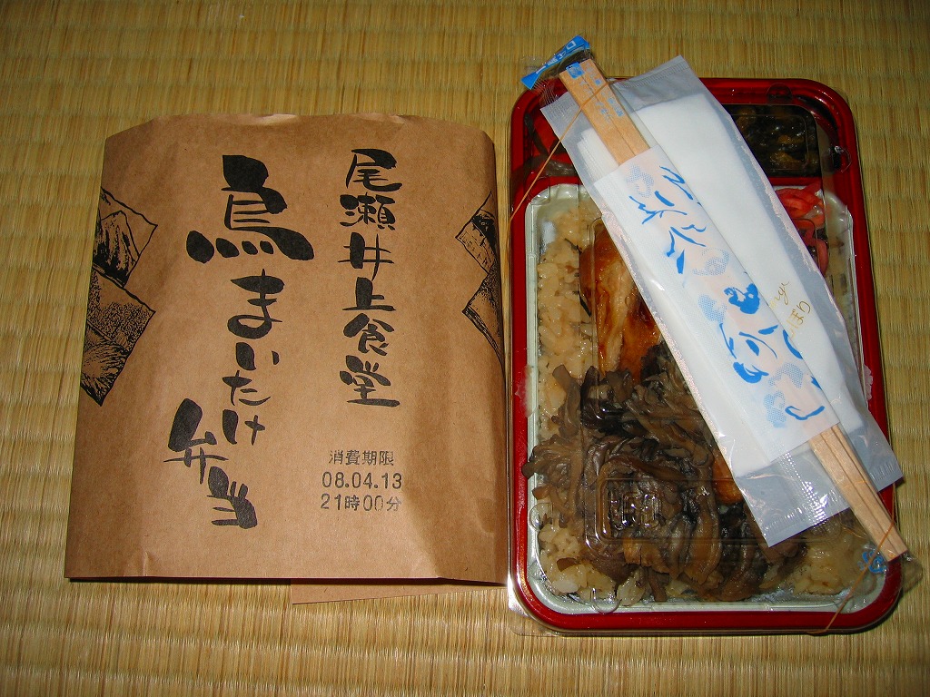 上記の駅弁「尾瀬井上食堂まいたけ弁当」の鶏肉増量版で、同じく上里サービスエリアで2008(平成20)年4月4日に発売。プラ製の惣菜弁当容器に透明な上げぶたをして、割りばしやおしぼりとともに輪ゴムでしばり、商品名を書いた掛紙を巻いてテープで留める。中身はマイタケの混ぜ御飯の上にマイタケと鶏照焼を半分ずつ載せ、紅生姜やわさび茎などの付合せを添えるもの。
