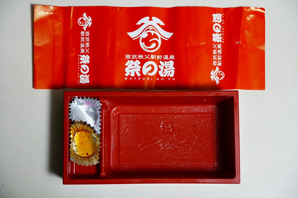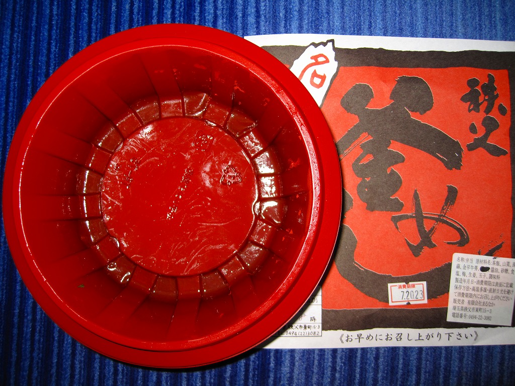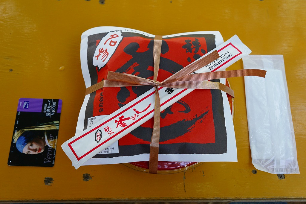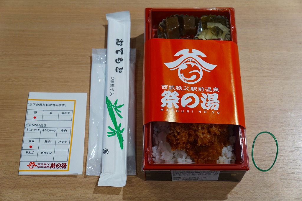 2016(平成28)年の西武秩父駅の温泉施設への建て替えのため、下記の駅弁らしい姿をしたわらじかつ弁当を販売する西武鉄道直営食堂が閉店していたため、この代替品を購入。翌年5月のリニューアルオープン後は、これが西武秩父駅弁の主力商品になってしまった。どうみても駅弁でなく、近所のスーパーか弁当屋のお惣菜。価格は2016年の購入時で618円、2018年時点で680円。2024年に来てみたら、売店での弁当の販売がなくなっていた。
