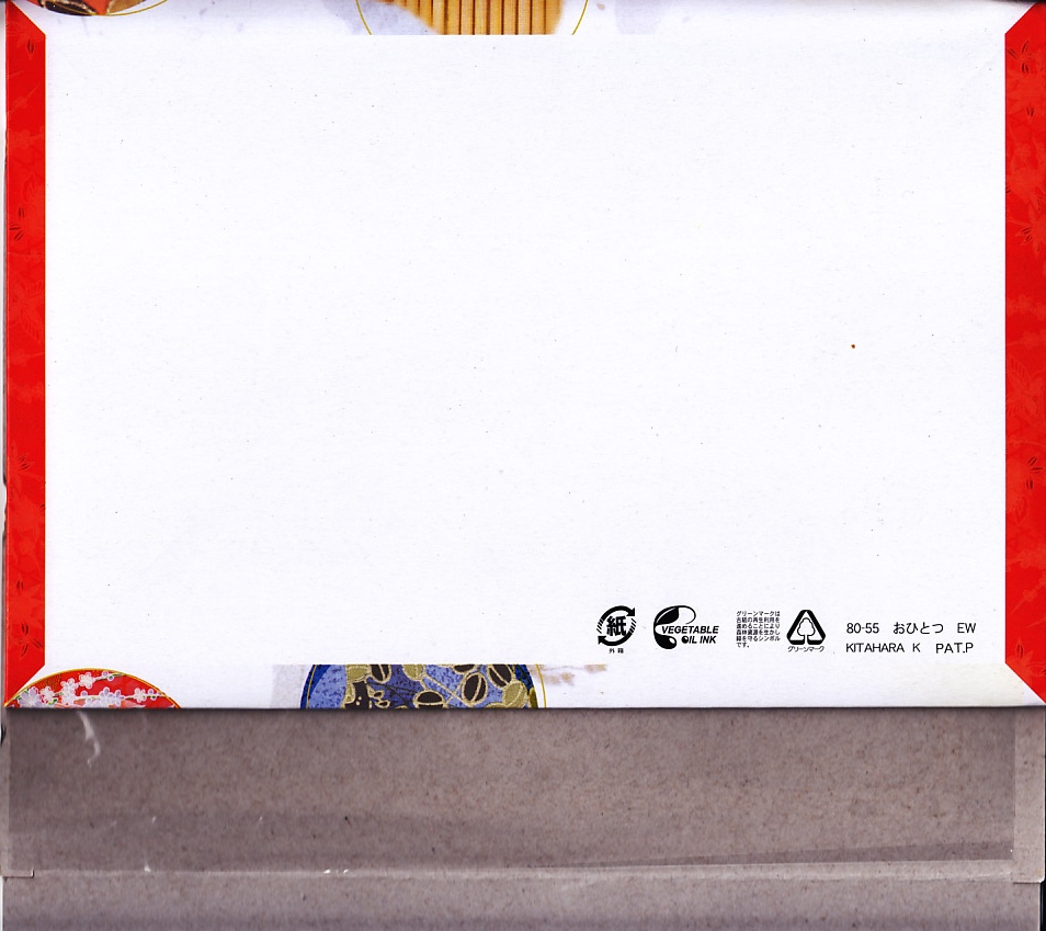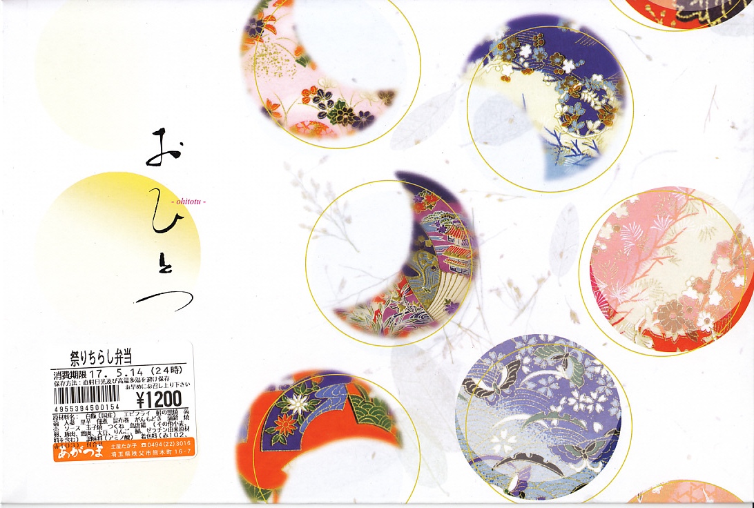 2009(平成21)年7月20日に購入した、西武秩父駅弁の掛紙。現在と絵柄は変わらないが、注意書きや調製情報の位置や内容が異なる。容器と中身は2015年のものと同じであった。
