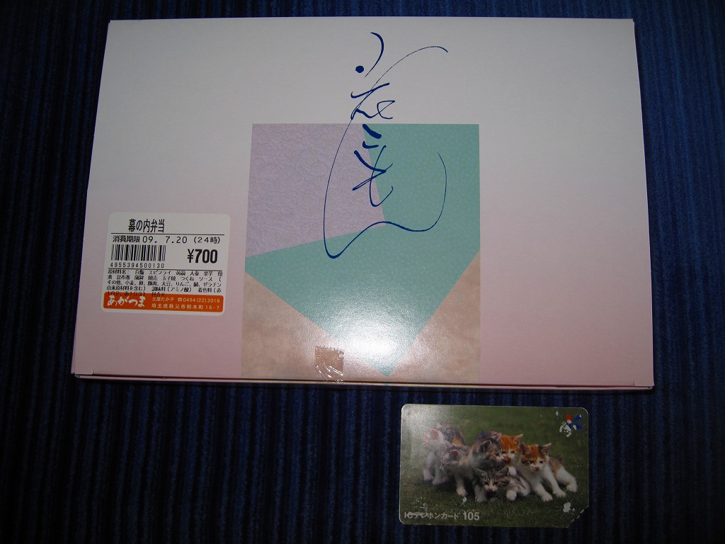 2009(平成21)年7月20日に購入した、西武秩父駅弁のパッケージ。上記の2015年時点のものと絵柄が異なるが、市販の惣菜弁当向けパッケージの単なるバージョン違いであり、大きさも中身も実質的な価格も変わらなかった。