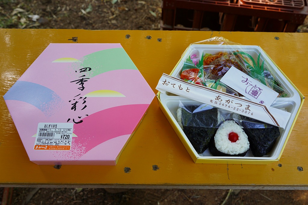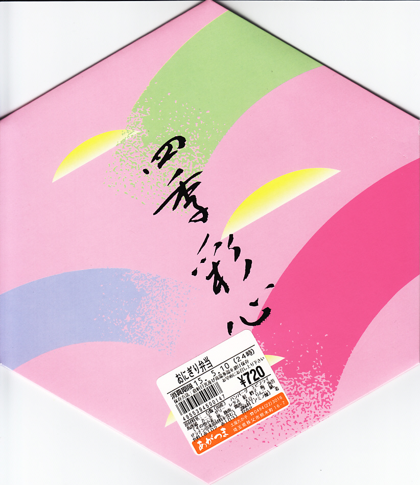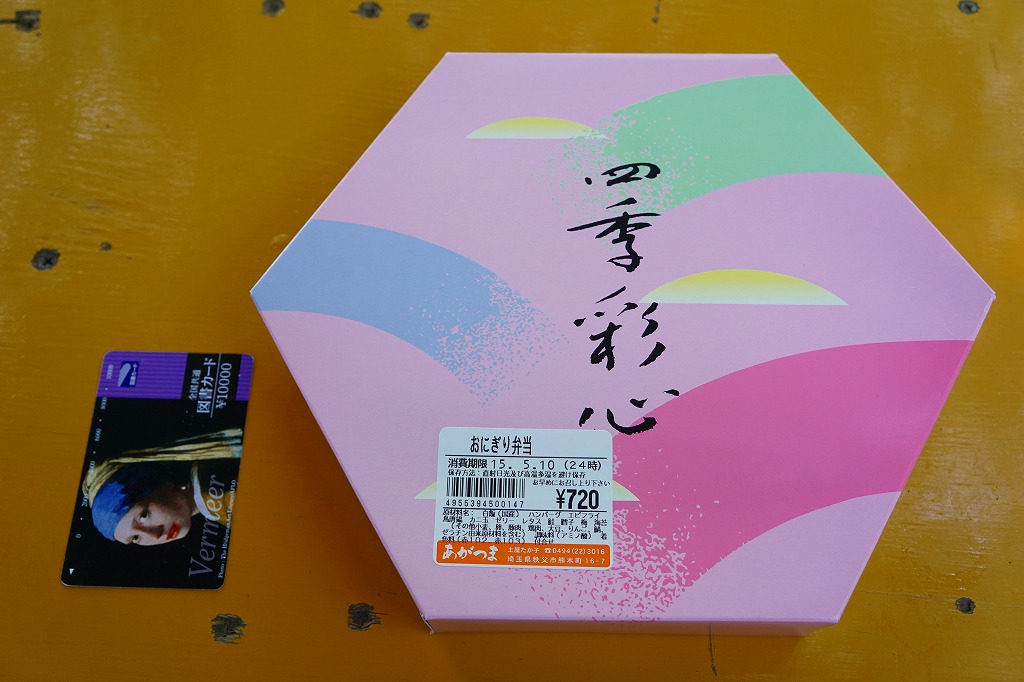 西武秩父駅で無名な駅弁のひとつ。「四季彩心」と書かれた市販の正六角形のボール紙製容器に、鮭おにぎり、たらこおにぎり、梅おにぎりを詰め、おかずとしてハンバーグ、エビフライ、鶏唐揚、玉子焼、スパゲティ、カップゼリーなどを添える。見た目は仕出し弁当風で、味はスーパーの惣菜風で、秩父とは何も関係がない中身であり、駅弁と紹介する弁当の雰囲気はない。ハイキングのお供として、ここにはこのようなお弁当の需要があるのだろう。価格は2000年代で700円、2014年4月の消費税率改定で720円。2024年に来てみたら、売店での弁当の販売がなくなっていた。