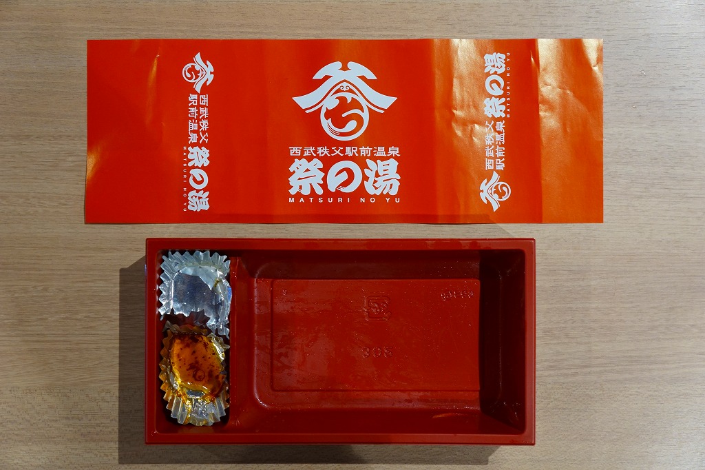 西武秩父駅の商業施設「西武秩父仲見世通り」の撤去で消えた駅弁が、新施設「祭の湯」で復活していた。2017(平成29)年4月24日の同施設のオープンとともに発売か。かつては作り置きの弁当を店頭販売していたが、現在はフードコートで食券を購入しカウンターで注文する必要がある弁当。