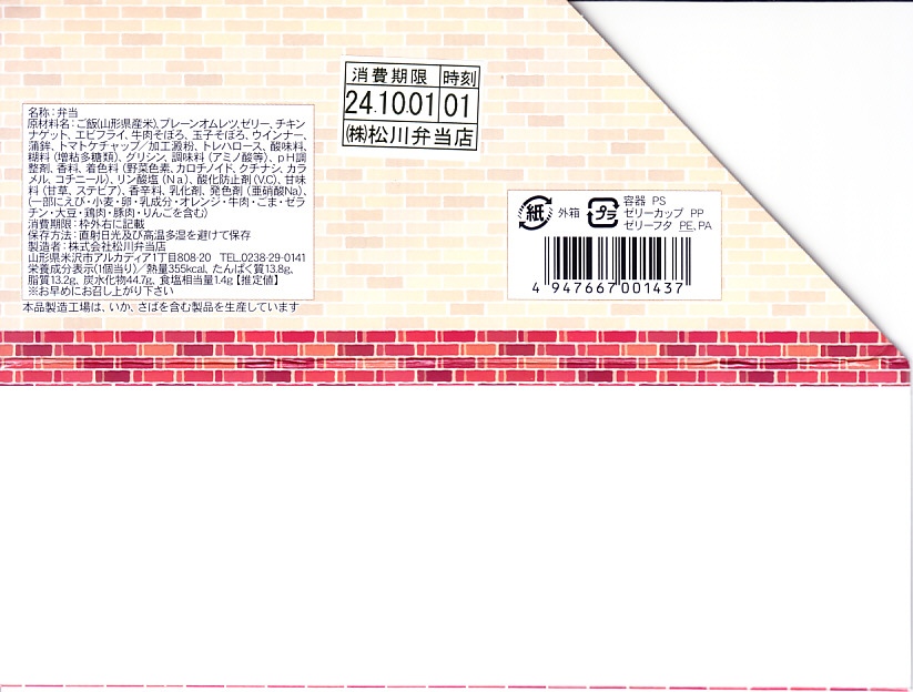 この手の駅弁の常に従い、中身の茶色いお子様ランチ。価格は2012発売時で1,200円、2015年時点で1,250円、2019年時点で1,300円、2022年時点で1,350円、2023年時点で1,400円、2024年時点で1,450円、9月の購入時で1,550円。鉄道博物館では2019年までの販売か。以後は米沢駅の駅弁として、催事などで売られる。