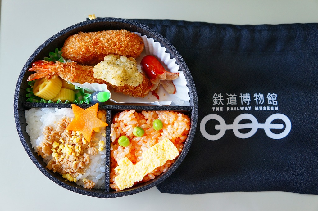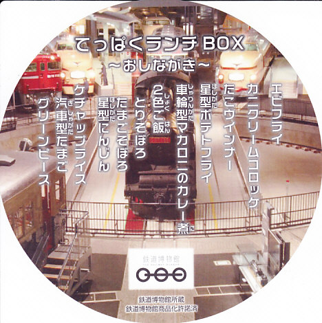 2010(平成22)年4月21日に、鉄道博物館(てっぱく)の館内で販売される弁当として発売。弁当の名前でなく「鉄道博物館」と書いた、蒸気機関車をイメージしたという真っ黒なきんちゃく袋に、同じく真っ黒な円形の容器を収める。中身は鶏そぼろと玉子そぼろの白御飯、汽車型たまごを貼るケチャップライス、エビフライ、カニクリームコロッケ、たこウインナー、星形ポテトフライ、車輪型とされるカレー味マカロニというお子様ランチ。きんちゃく袋に印刷される鉄道博物館のロゴマークのとおり、丸いグリーンピースとマカロニは3個ずつ入っていた。2007年10月にリニューアルで終売。
