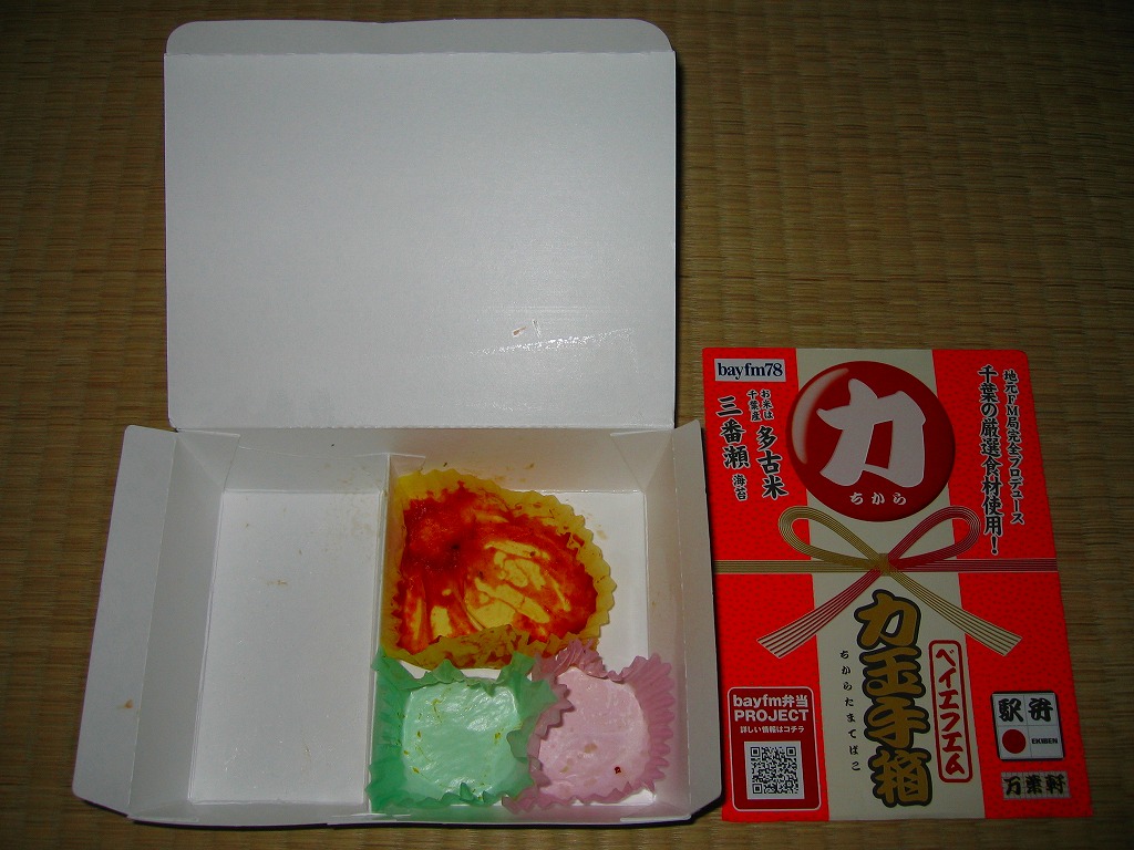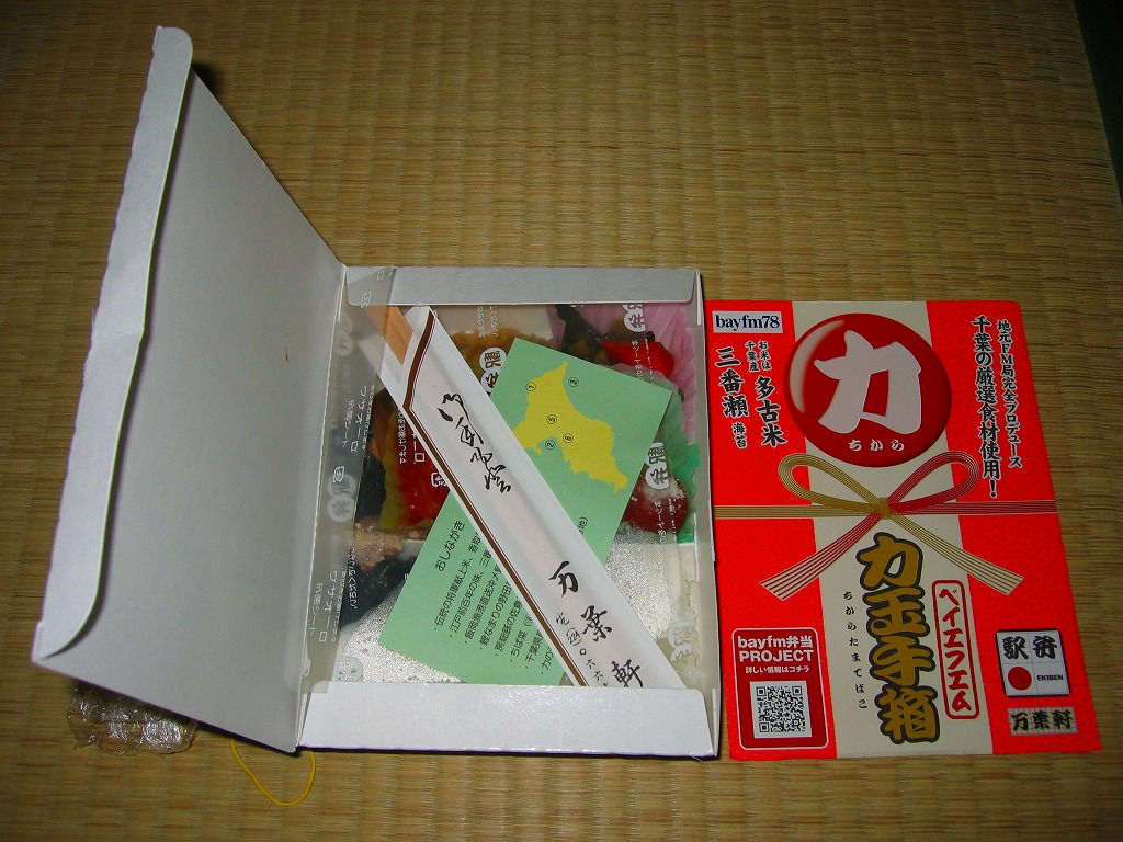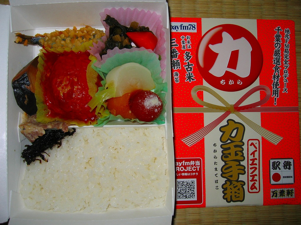 千葉駅弁の万葉軒と、千葉県のFMラジオ局であるベイエフエムが共同開発し、2008(平成20)年4月25日に発売。台湾駅弁のような牛乳パック素材のフタ一体型紙箱に、駅弁の名前やタイアップの事実などを記した掛紙をかけて、まるごとラップで包む。購入時の中身は千葉県産・多古米の白御飯に「力玉」と呼ぶ肉団子、カツオなまりひしお煮、イワシのピーナッツ揚、豚肉味噌焼、かぼちゃペースト、ミニトマトチーズ焼、のり佃煮など。