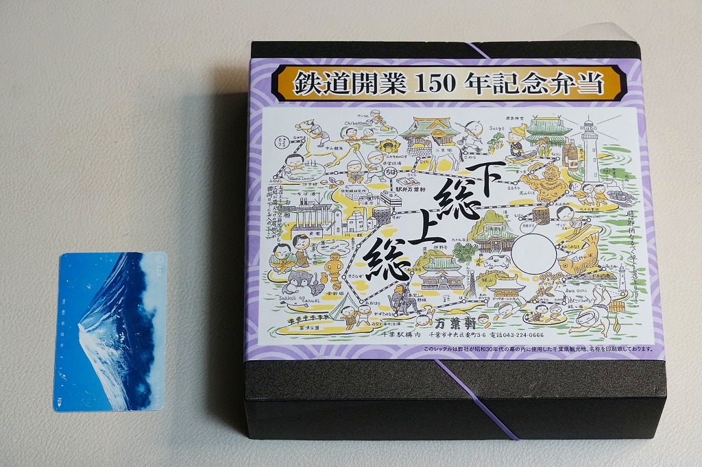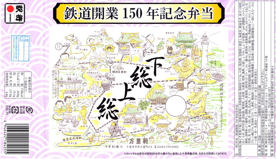 2022(令和4)年10月に発売、同月からのJR東日本の駅弁キャンペーン「駅弁味の陣2022」にエントリー。この年の鉄道開業150年にちなんだ弁当であることは明白だが、日本鉄道構内営業中央会の鉄道開業150年記念復刻駅弁企画には含まれていない。掛紙は「昭和30年代の幕の内に使用した千葉県観光地」とのことで、60年前の千葉名所がわかる。