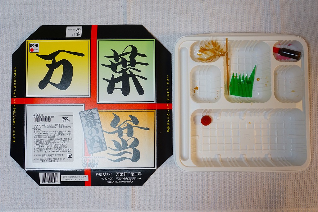 アサリ串が千葉駅弁らしく、ピーナッツ味噌が珍しいが、おかずのチープさは筋金入り。ビニール袋入りの割りばしがトレー内に収まる姿も久々に見たと思う。こんな下等幕の内と呼べるような駅弁は、もはや日本中でここだけかもしれない。千葉駅弁の揺るぎない個性と文化を感じる。価格は2014年4月の消費税率改定で670円、2015年時点で700円、2019年時点で720円、2020年7月15日から800円、2022年4月16日から880円、2023年1月から900円、6月16日から1,050円、2025年時点で1,100円。10月から「消費者物価指数に連動した「時価販売」」として、3か月ごとに価格を見直すといい、まずは1,136円で販売。