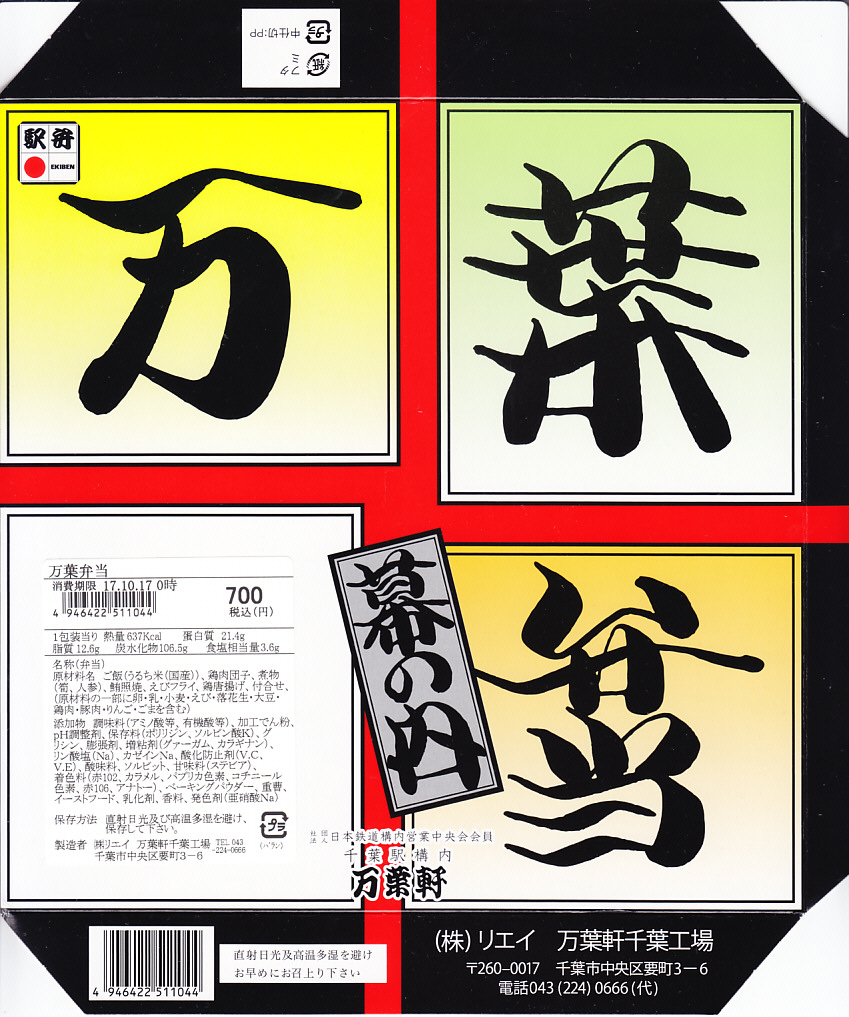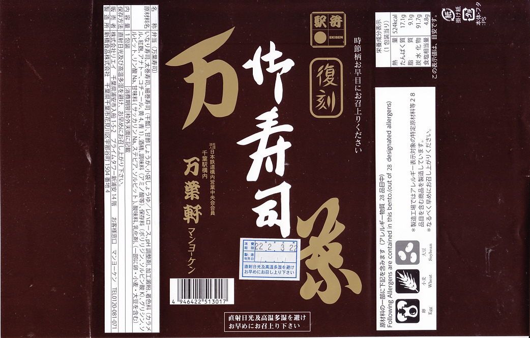 終売から復刻の間に、駅弁屋の万葉軒は2015(平成27)年2月に千葉県浦安市の介護サービス会社であるリエイに吸収合併されて屋号となり、2020(令和2)年8月に調製所を閉めたため、製造所が千葉市郊外の仕出し業者に、連絡先が所在地や契約者が不明のフリーダイヤルとなっている。