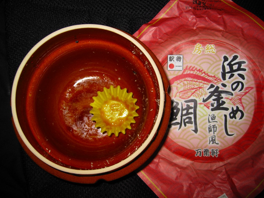 鯛飯の駅弁は東海道本線で百余年の時を刻むが、千葉県の魚はタイであるため、千葉の駅弁に鯛飯があってもおかしくない。価格、見栄え、味とも、そこそこよくできている印象。このシーズンの駅弁大会では、催事場でより映えていた。2014年までの販売か。
