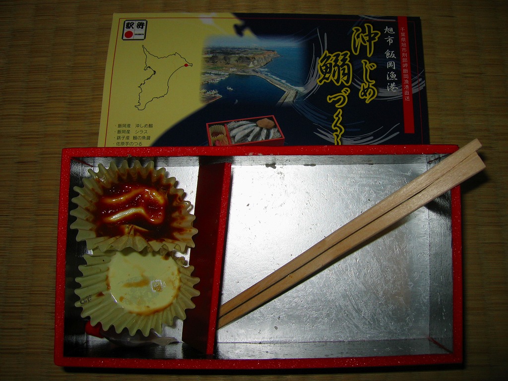 さすがにサバやアジの同種駅弁と比較すると見栄えが劣り、やや水っぽい味もしたが、イワシやシソが嫌いでなければそこそこいけるし、関東の駅弁にしては飯がうまい。かつては獲れすぎて捨てられたり畑の肥料にされたイワシも、近年は漁獲高が激減しているため、そのうち高級魚となり、調理技術も多く注がれるようになるだろう。「沖じめ鰯づくし」の発売により、2008(平成20)年5月までに終売か。