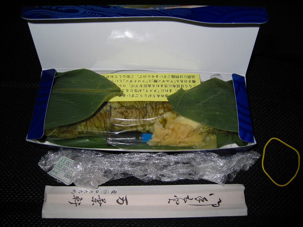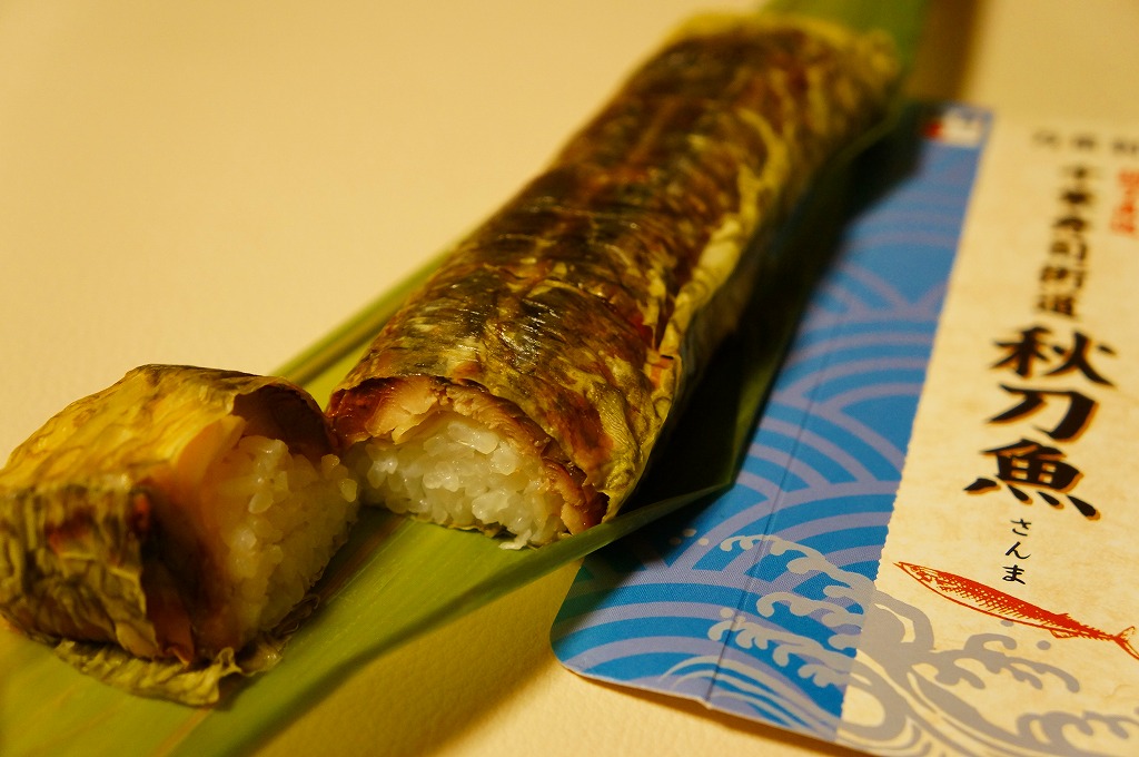 2010(平成22)年の5月までに発売か。従前の類似品を統合したのか、アジ、タイ、サンマ、イワシとこのサンマで5種のシリーズを組む。こちらは円筒状の酢飯に、サンマの西京焼とおぼろ昆布を半周以上巻き付けて、透明なシートを巻いてから笹の葉の上に置き、駅弁の名前を書いた専用の小さなボール紙箱に収めるもの。