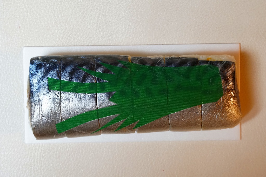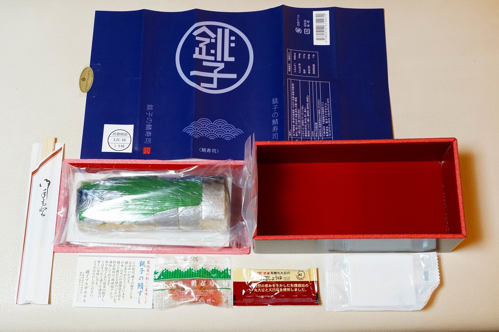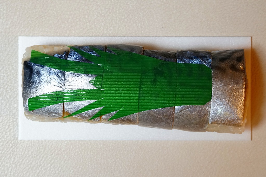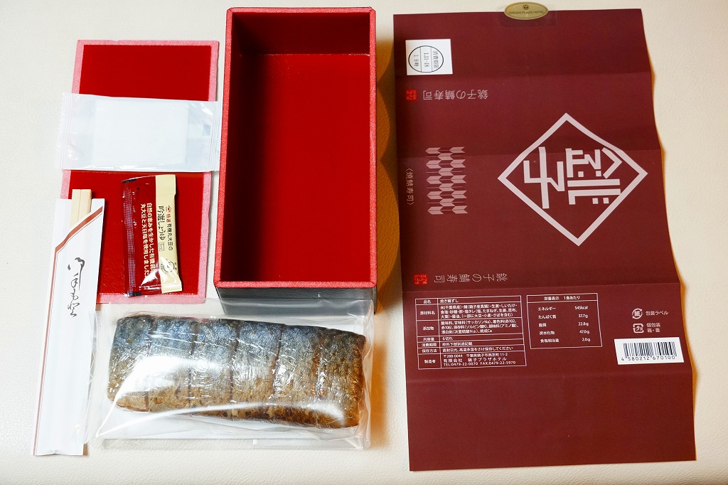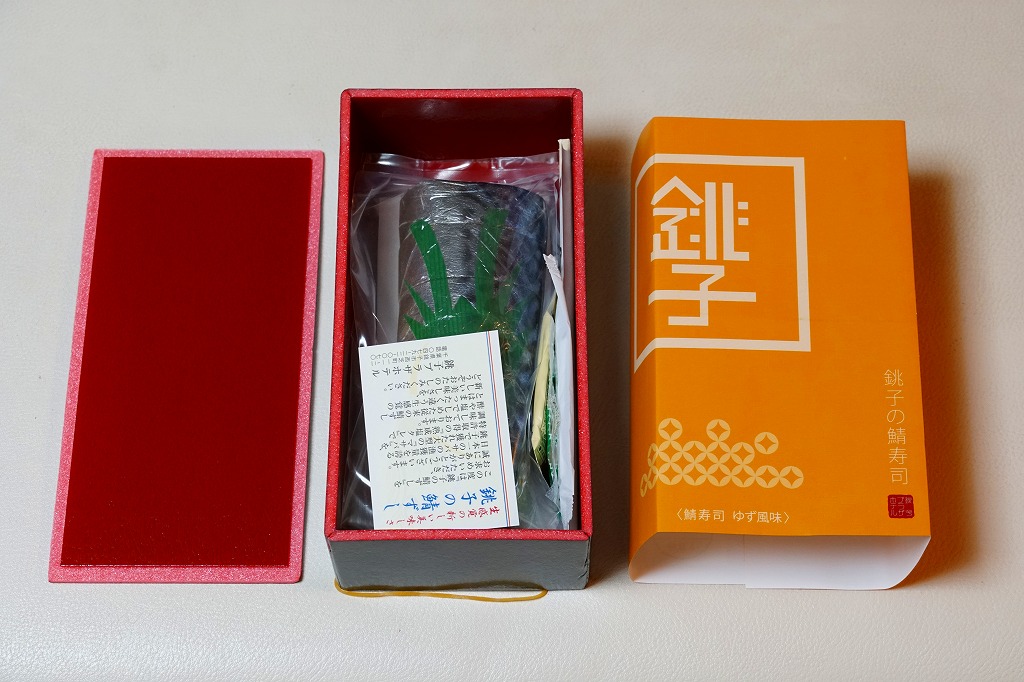 体裁としては、棒寿司が1本。酢飯に銚子産マサバを合わせた、魚肉ソーセージ3本分くらいの細身の棒寿司が、ラップに包まれ、透明な袋に密封され、ガリや醤油や割りばしなどとともに箱詰めされる。特許取得の熟成塩タレで調味したというサバ寿司はぷりっぷりで、新鮮な印象で、それなのに手にも味にも脂ひかえめで、酸味はほとんどなく、素晴らしいうまさ。価格は2019年時点で1,080円、2023年時点で1,200円、10月までに1,500円、2025年時点で1,800円。
