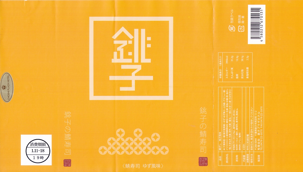 上記の商品「銚子の鯖寿司」について、酢飯に柚子を混ぜたもの。青い包装紙が橙色ないし柚子色になり、風味に柑橘類の香りが加えられた。価格は2019年時点で1,188円、2023年時点で1,300円、10月までに1,600円。