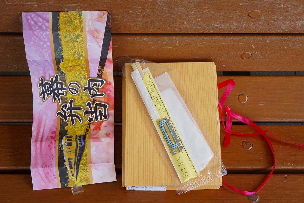 2017(平成29)年7月に、従前の「昭和の幕の内弁当」をリニューアル。中身はその末期とあまり変わっておらず、白御飯を海苔で覆い、焼鮭、コロッケ、玉子焼、焼売、シイタケ煮、ひじき、サツマイモなどのおかず。掛紙は菜の花畑を通るいすみ鉄道の列車へ、大きくリニューアル。引き続き土休日に大原駅で売られる。2018(平成30)年6月までは予約を推奨し、翌7月から逆に予約不可となった。2019年までの販売か。