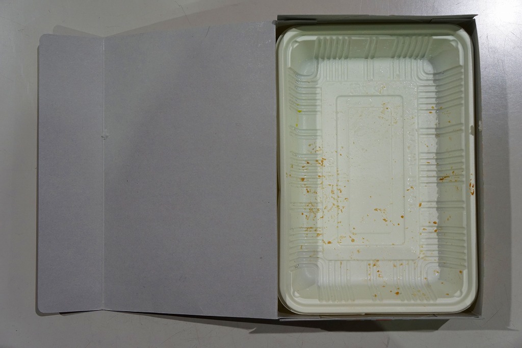 2002(平成14)年3月限りで駅から消えた、かつての佐倉駅弁が、2015(平成27)年時点で地元の弁当として生き残っていた。写真のとおり、容器も中身も駅弁当時のまま。さすがにパッケージからは、鉄道に関連する表記が消えている。甘味のある鶏肉のタレや、辛味のある鶏そぼろの味付けは、今の外食や中食にない、懐かしさを覚える味。地元のイベントで販売されたり、こうやって団体予約により買うことができた。2017年1月の調製元の破産により、今は買えない模様。