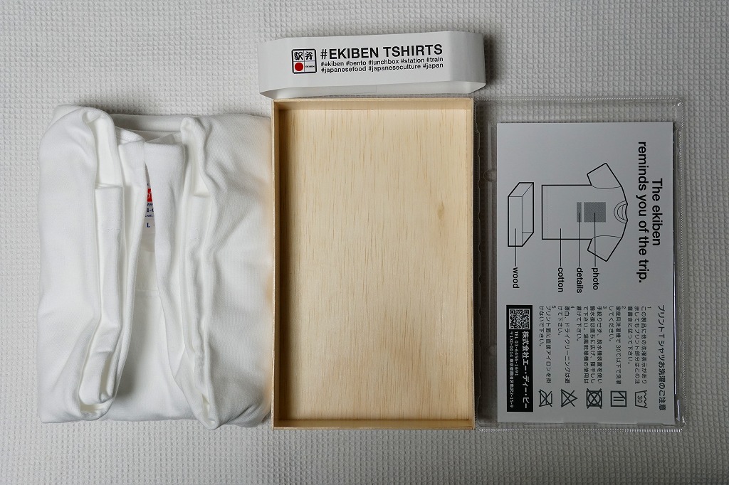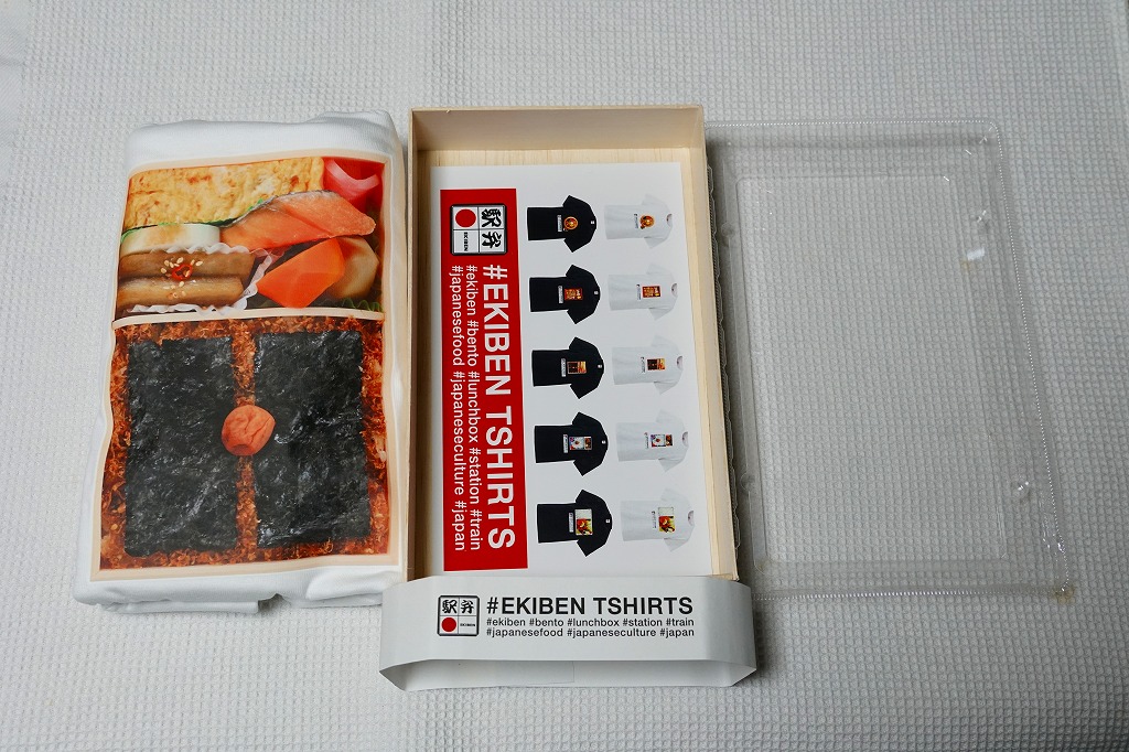 2018(平成30)年9月30日にJR東日本の各駅の鉄道グッズ店で発売。ふたが透明で中が見える長方形の木質エコ容器に、商品名の紙帯を締める。中身は駅弁の中身をプリントしたTシャツが1枚。おしながきは底面に敷かれていた。食べられない、着る駅弁。