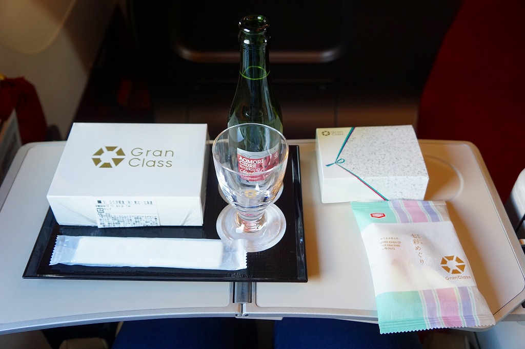 グランクラスの軽食の選択制は2019(平成31)年3月限りで廃止され、4月から和軽食のみが提供される。東北新幹線、北陸新幹線、上下の別で4種類があるという。