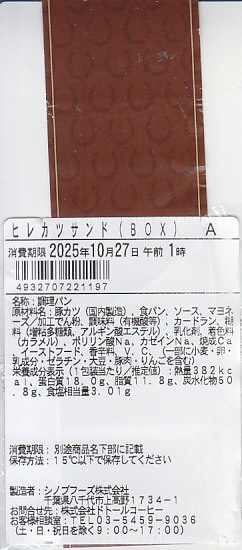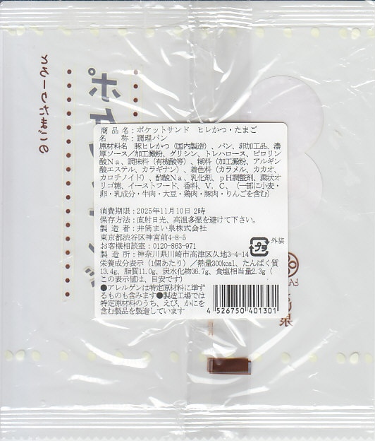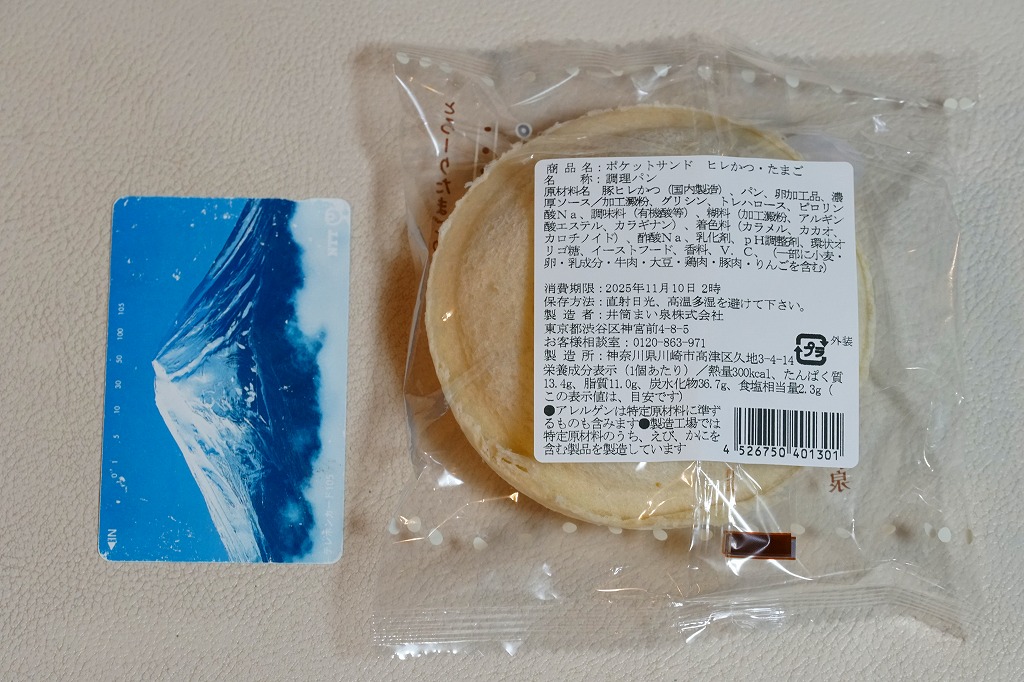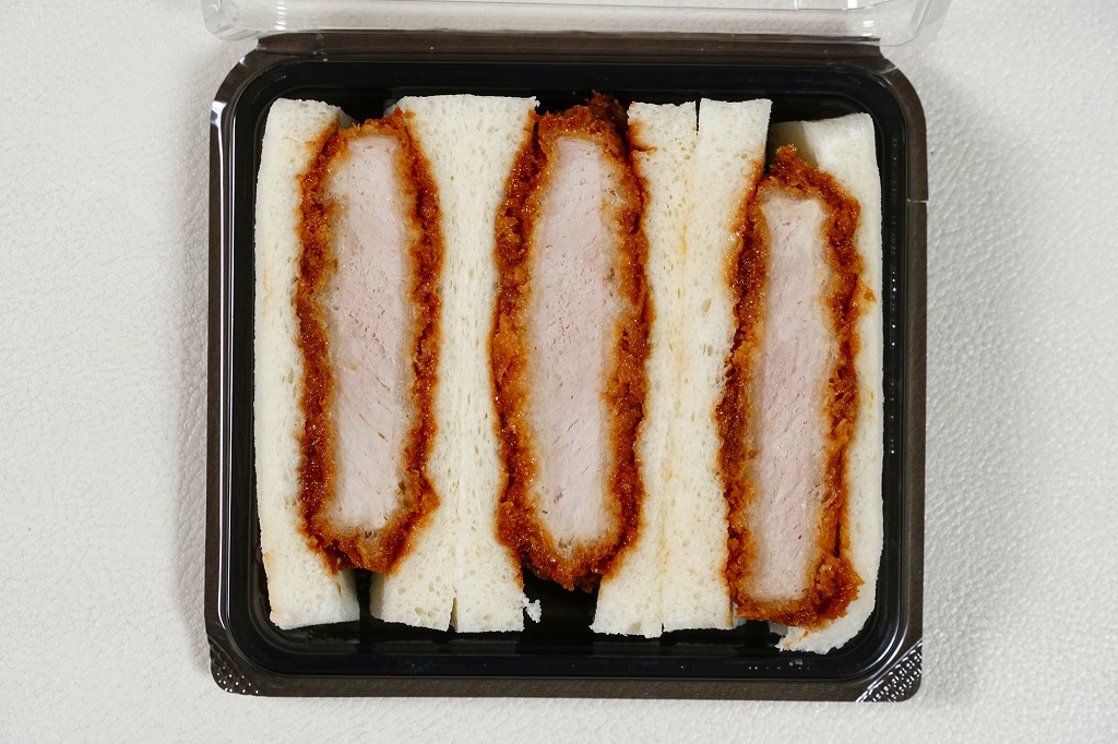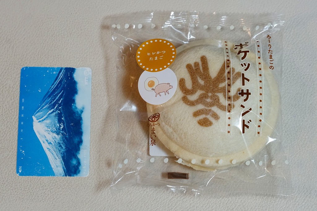これは駅弁でなく、歌舞伎座で買えた商品。関東地方の各地でデパートに出店するトンカツ店「まい泉」で売られる、変わり者のカツサンド。中身は写真では分からないが、丸いヒレカツ1枚と両面焼きの目玉焼き1枚を、円形のパンに挟んで周囲を密封する。やわらかカツと、とろーり玉子で、幸せな味がする。