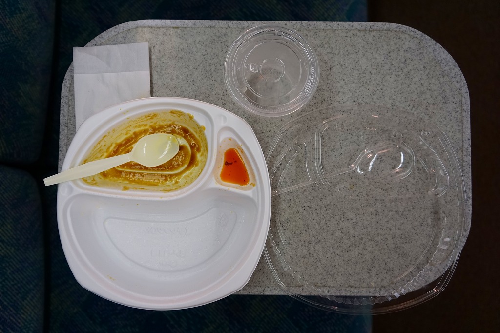2014(平成26)年までは、1号車階下のサロン室で食べる場合に限り、陶製の皿にカレーを盛り、金属製スプーンを付けて提供したという。観光列車の特別車に乗ったのに、このような屋台の食事が出てきては、がっかりするかもしれない。しかしこれが、普通の客が切符を買って乗れる列車では全国で唯一となった、車内で提供される暖かい食事であった。