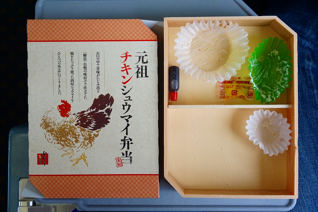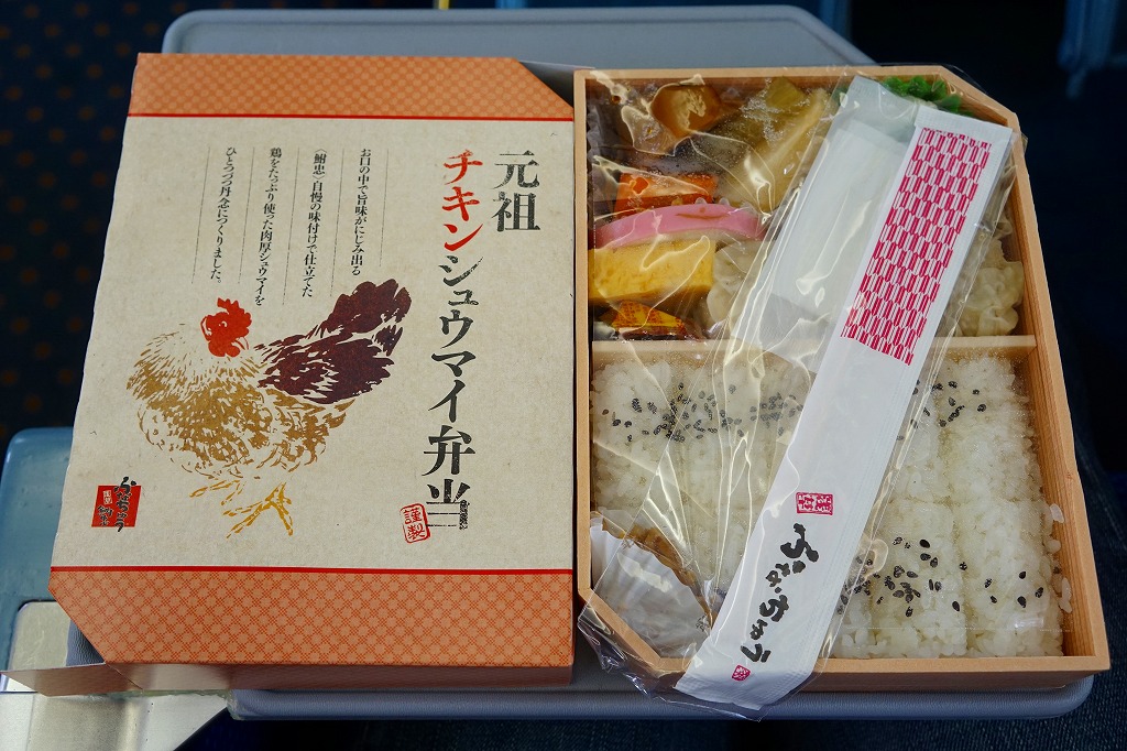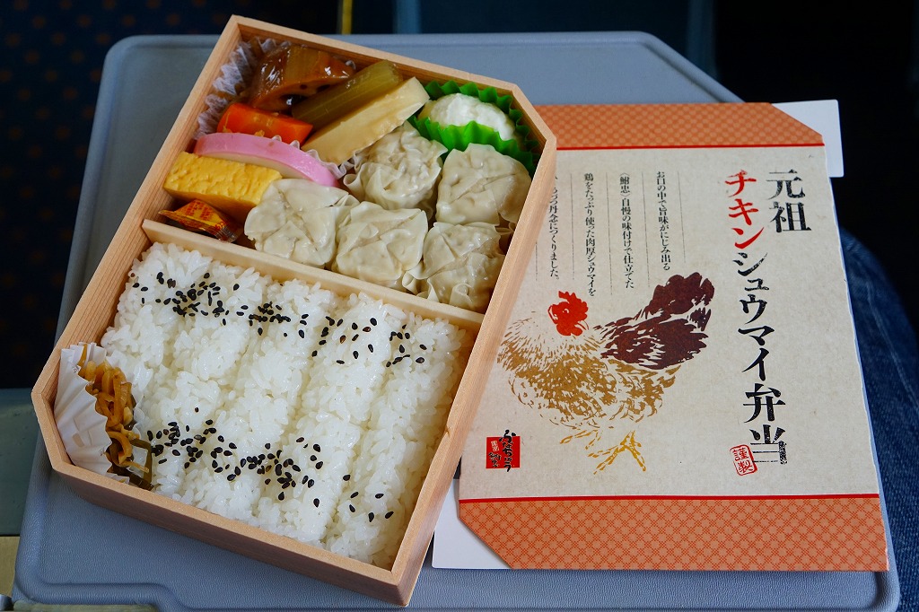 1954(昭和29)年発売の横浜駅弁「シウマイ弁当」によく似ていると思うが、どちらもつまりシウマイを入れた幕の内弁当であるから、不自然ではないと思う。その伝統の駅弁に比べると、こちらは飯も焼売もおかずも、水気があり柔らかくなっている。