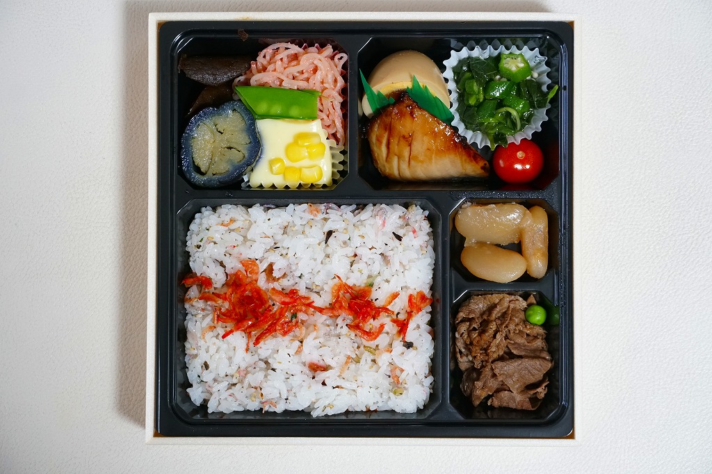 これはレシートでの商品名が「夏の旬彩御膳」だったので、夏季の季節商品なのだろう。牛丼でなく幕の内弁当タイプの、正方形の平たい容器に、梅ちりめん飯、カジキ照焼、煮玉子、ミニトマト、オクラモロヘイヤ、なすのオランダ煮、もろこし豆腐、きぬさや、白滝たらこ和え、白金時豆、牛肉煮を詰めていた。駅弁として見れば個性的な内容を持つ、今半として見れば牛肉の分量も存在感もほとんどないお弁当。