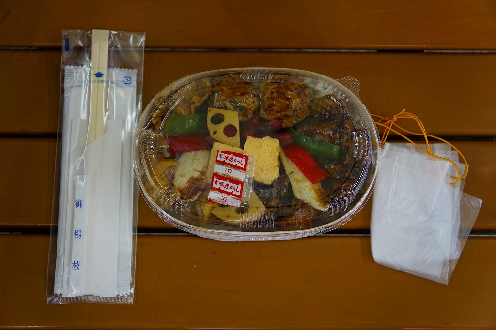 東武浅草駅で駅弁も売る売店にて購入。わっぱ型の木製エコ容器の全面に白御飯を敷き詰め、焼き鳥や鶏肉団子をゴロゴロと撒いて外周を固め、長ネギ焼、レンコン、玉子焼、ピーマンなどを詰める。掛紙その他のパッケージがないため、コンビニ弁当か惣菜弁当にも見えるが、分量の多さ、容器の深さ、味の濃さ、常温での風味は、駅弁のそれである。鶏肉は分量に加えてタレの塩気や辛味の強さもあり、くどいほどの鶏丼。これはかつて「焼き鶏丼」の名で、浅草駅や北千住駅の駅弁として売られていたのではないかと思う。調製元の2017年頃の撤退により、今は売られていないはず。