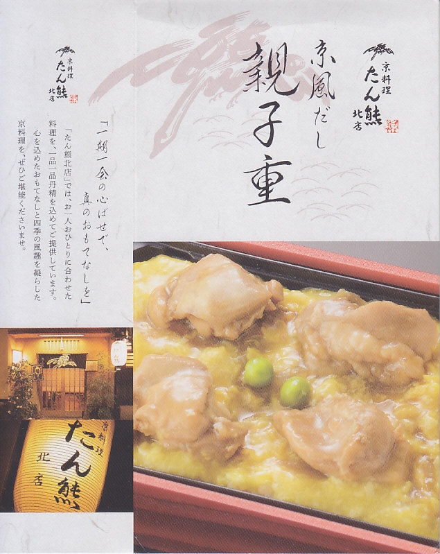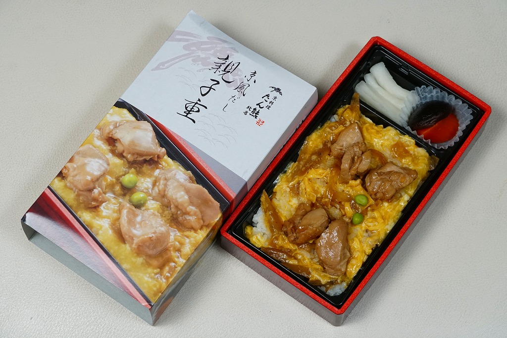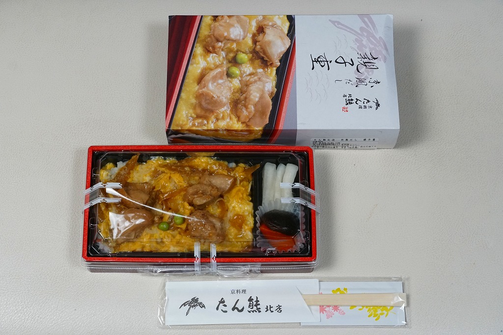 2025(令和7)年1月までに羽田空港で発売された空弁。東京などでチェーン展開する京都の京料理店「たん熊北店」ブランドのお弁当で、東京でのみ販売か。商品名やブランド名に中身の美しい写真を載せたスリーブに収めた長方形のプラ容器に、白飯を敷き、鶏すき煮の卵とじで覆い、煮物とゆず大根漬を添える。シンプルに作られた、冷たくても出汁が香る、おいしい鶏肉丼。こうして東武浅草駅弁の一部は羽田空弁である。