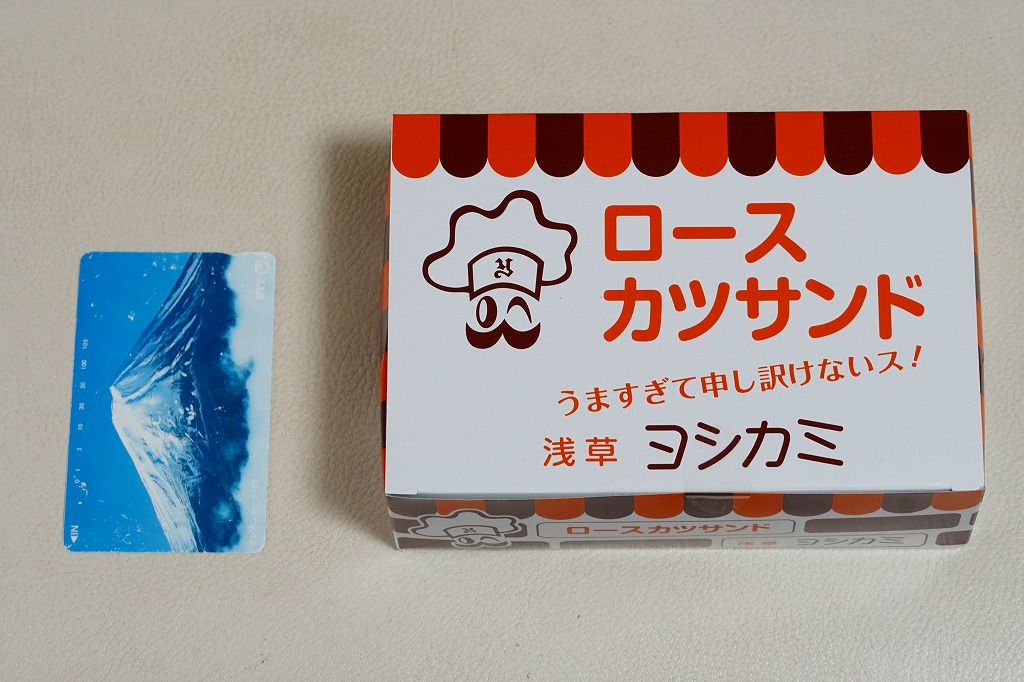 羽田空港の空弁売り場や、東京駅や上野駅などの駅弁売店「膳まい」改め「HANAGATAYA」でおなじみの、浅草ヨシカミのロースカツサンド。2023年までに東武浅草駅の駅弁売店でも売られるようになった。浅草駅で「浅草ヨシカミ」なので、浅草駅の駅弁に見えてくる。