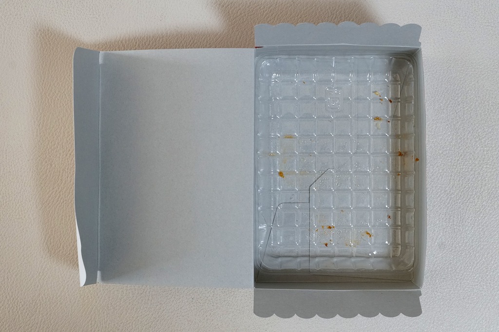 鳥飯など市販品では下手に作りようがない分野だと思う。しかしこの鳥肉板はパサパサで醤油臭く、彩りのためだけに散らしたグリーンピースで一般受けを削ぎ、雑に付けたタクアンとしば漬けの着色は毒々しい。こんな市販弁当が高度経済成長期までならともかく、平成の21世紀の首都ターミナル駅で現役なことに驚くばかり。掃除が行き届いていない電車内で、割り切りながらかき込んだ。