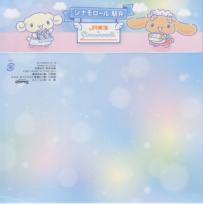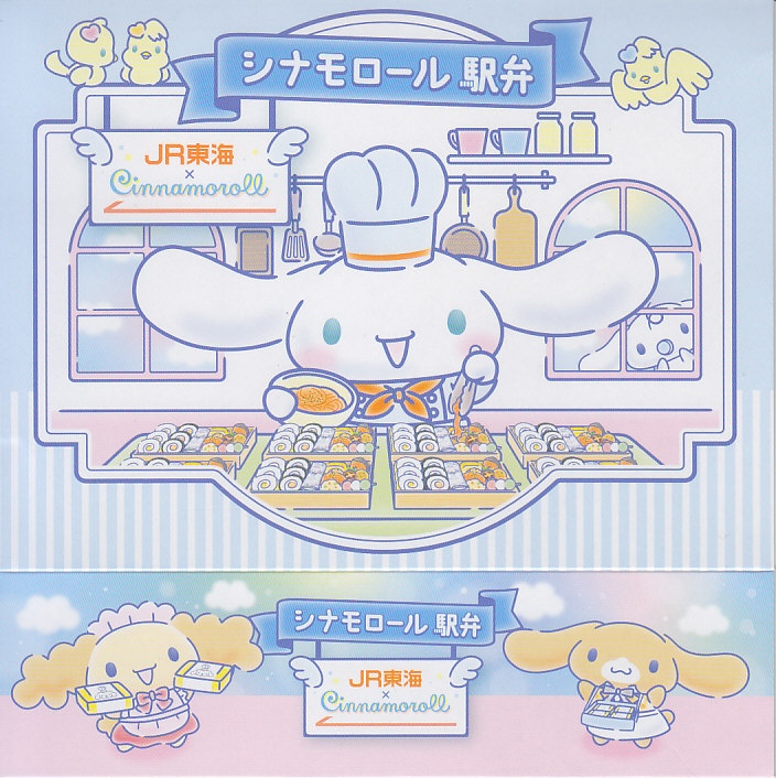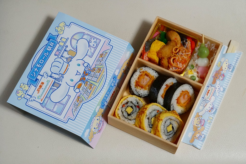 2025(令和7)年8月19日から9月8日まで、東海道新幹線の東京、品川、新横浜、名古屋、京都、新大阪駅の売店で販売。同期間のJR東海(JR東海リテイリング・プラス)の「シナモロールコラボキャンペーン」で、フェア描きおろしデザインのオリジナル駅弁や、おにぎり・サンドイッチ・スイーツ、缶バッジなどのオリジナルグッズのコラボ商品を限定発売した。