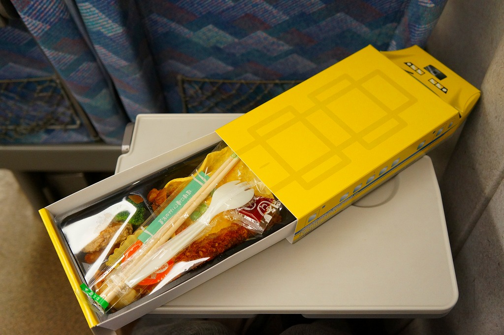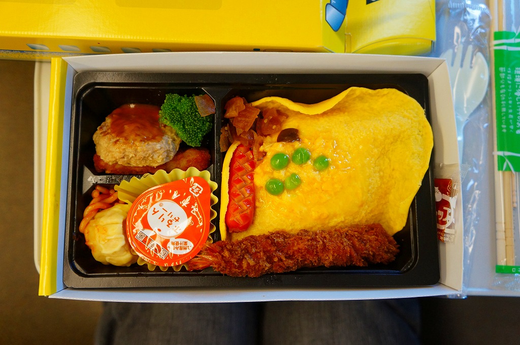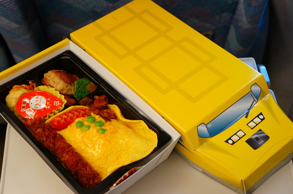車両を模してはいるがずいぶん平べったいボール紙製容器の、引き出しに収まる黒いプラ製トレーに、たっぷりのオムライス、ウインナー、ハンバーグ、フライドポテト、エビ焼売、スパゲティ、ブロッコリー、みかんゼリー、福神漬などを詰める。つまり、中身は一部を除きお子様ランチ。割り箸とプラ製スプーンの双方を添付し、親子で一緒に車内で食べられる。駅での販売は2013年に終わり、以後は名古屋市の「リニア・鉄道館」の館内弁当として売られている模様。