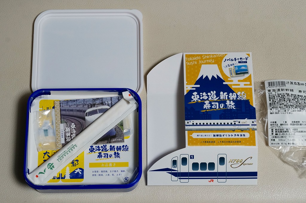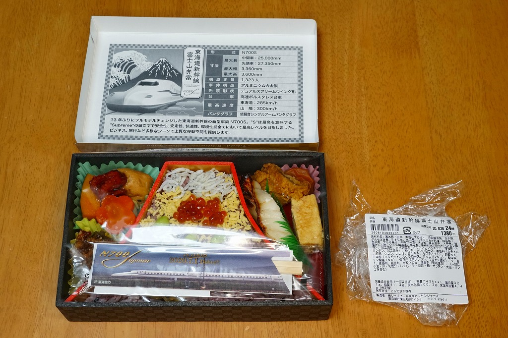 2024(令和6)年10月15日に、東海道新幹線の東京駅とリニア・鉄道館で発売。12日から14日まで静岡駅ビルで先行販売。ここでは新横浜駅で買えたため、この調製元の弁当なので東京駅から新大阪駅までの主要駅でも売り始めたはず。富士山と新幹線で定番の風景写真を印刷した、いわゆるタッパー、プラスチック製密封容器を、商品名や新幹線車体柄などを記したスリーブにはめる。