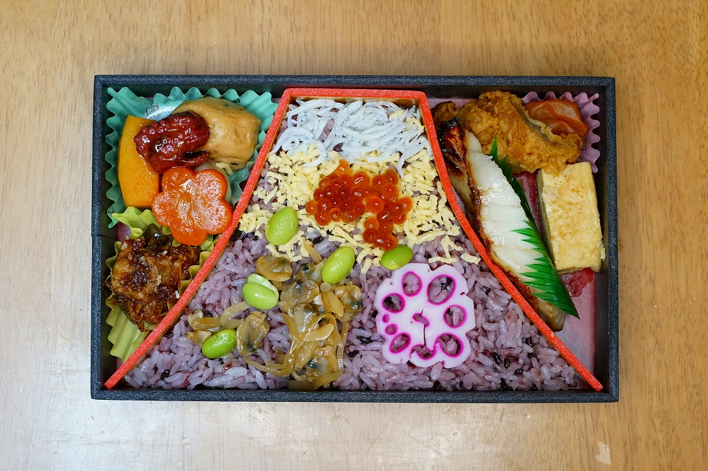 中身は黒米の赤飯に釜揚げシラスや錦糸卵やイクラやアサリなどを載せて富士山を描き、その左側でタコやカボチャの煮物やたこ焼きで大阪をイメージ、右側で赤魚醤油焼やアナゴ天ぷらや玉子焼で東京をイメージしたとするもの。釜揚げシラスは愛知産。中身でも新幹線の経路で東京と大阪を結ぶ。価格は2020年の発売時で1,380円、2021年1月に1,180円に値下げ。駅弁の単純な値下げは、極めて珍しい。2022年5月頃までの販売か。