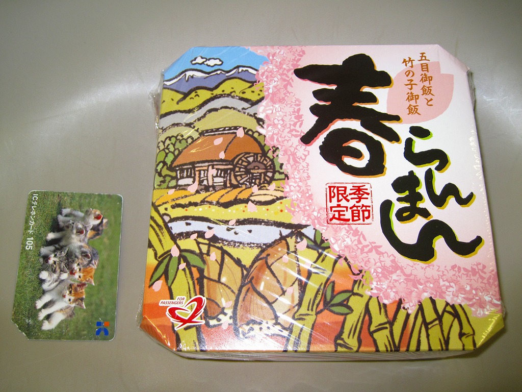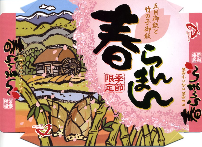 駅弁は少量でまずくて高いと思っている人は納得しないだろうけど、少量ながらかなりいろんなものが入っており、ちょっと軽めの一食として十分な満足感があるはず。山菜弁当と呼んで良さそうな、野菜と山菜がたっぷりのお弁当。JRCPのこういう弁当に地域性やローカル色はないのだが、パッケージの絵柄はうまく決まっていると思う。同じ名前と違う中身で、以後も毎春に出した模様。2016年までと2018年でおしまいか。