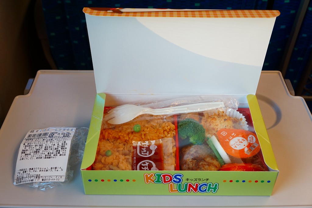 2014(平成26)年の夏頃から秋頃までの販売か。前年の夏休み期間中の東海道新幹線「ファミリー車両」の実施に合わせ、プラレールの絵柄とシール添付で2013(平成25)年の7月20日から9月1日まで売られた「キッズランチ」と、値段や中身がほぼ同じ。同じ名前でJR東海のパビリオン「リニア・鉄道館」で売られる「キッズランチ」とはまるで異なる。