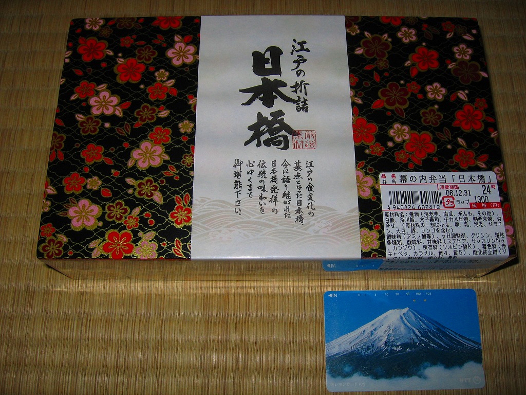 下記の駅弁「特製幕の内弁当 日本橋」の、2006(平成18)年時点での姿だと思われる。広さと深さがある豪華絢爛な柄の容器に、商品名その他最小限の文字だけ書いた掛紙を巻き、ラップで包んで食品表示ラベルを貼る。掛紙と食品表示ラベルで商品名が異なるが、ここでは掛紙に従った。