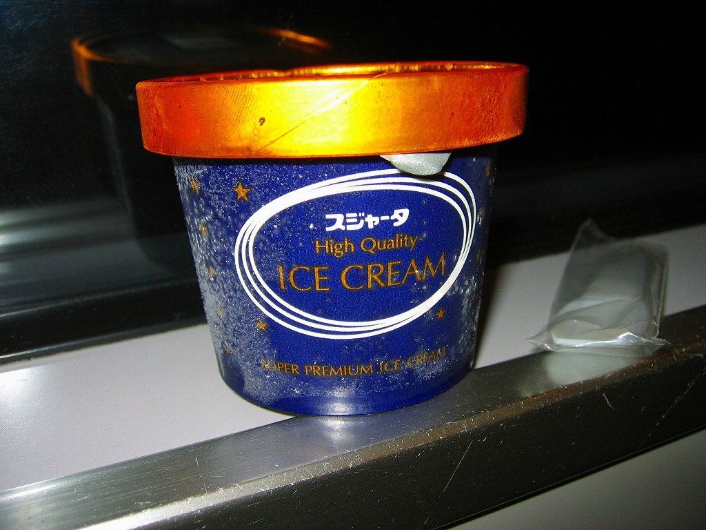 コーヒーフレッシュ「スジャータ」で知られる名古屋製酪(めいらく)の高級アイスクリーム。ふちが金色でフタや本体が群青色の紙カップいっぱいに、120mlのバニラアイスが詰まる。購入時はだいたいカチカチに凍っており、少々時間を置けばとても濃厚な風味を楽しめる。