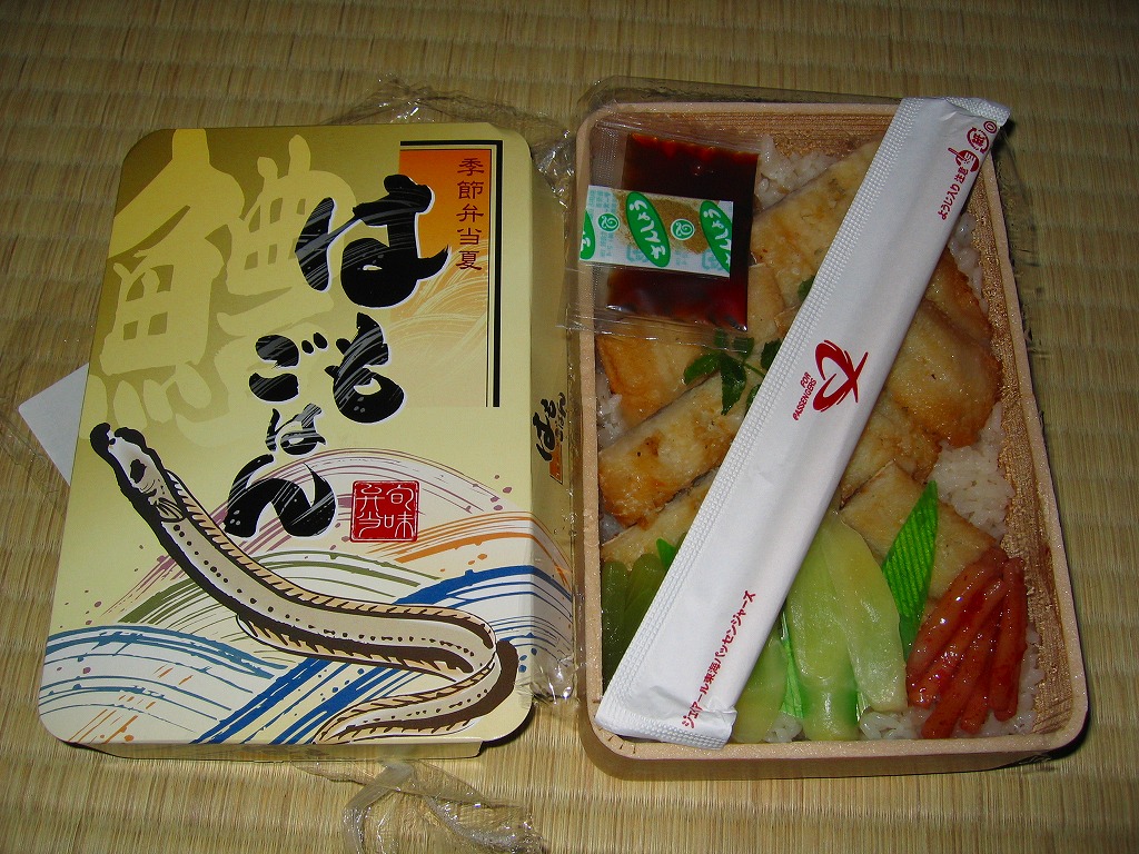 2005(平成17)年6月1日から9月14日まで、東京・品川・新横浜・名古屋・京都・新大阪の各駅と東海道新幹線車内で販売された、JRCPの季節駅弁の2005年の夏バージョンで、駅弁では珍しいハモのお弁当。以後も