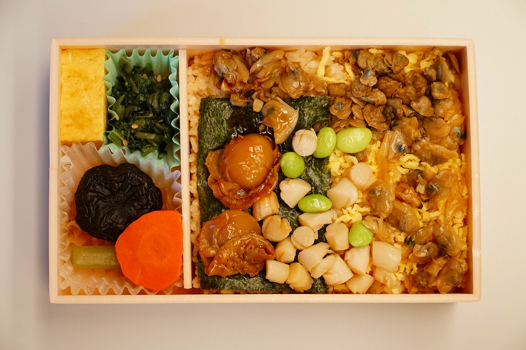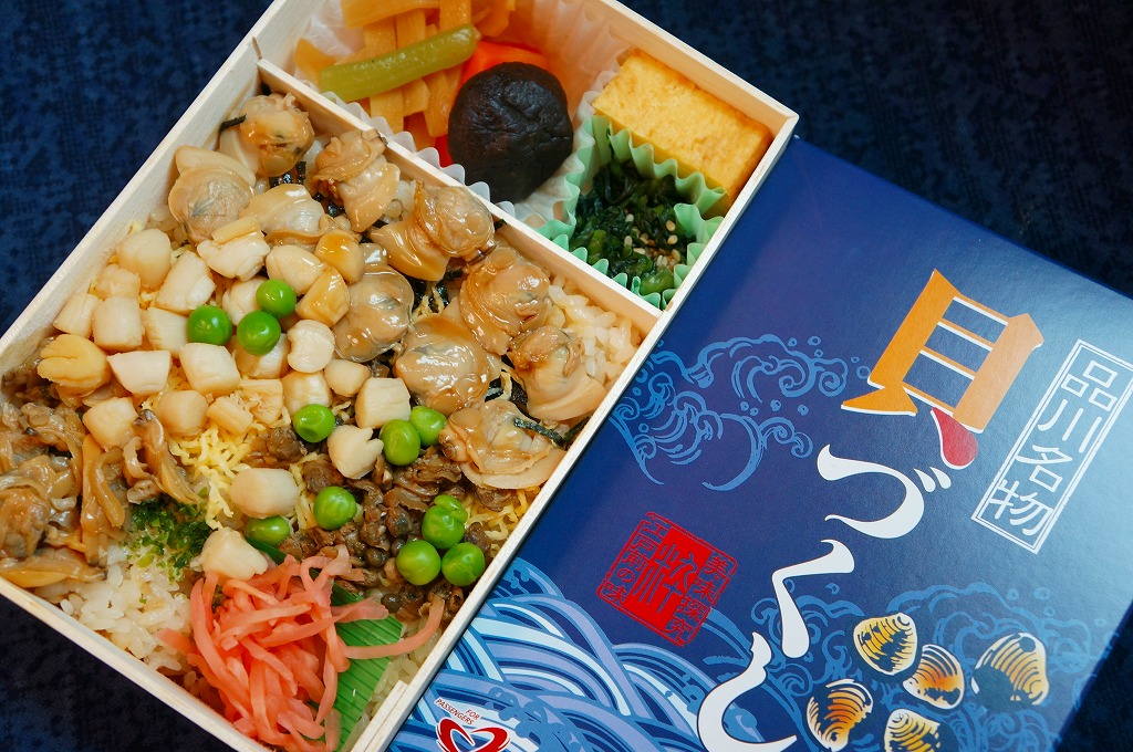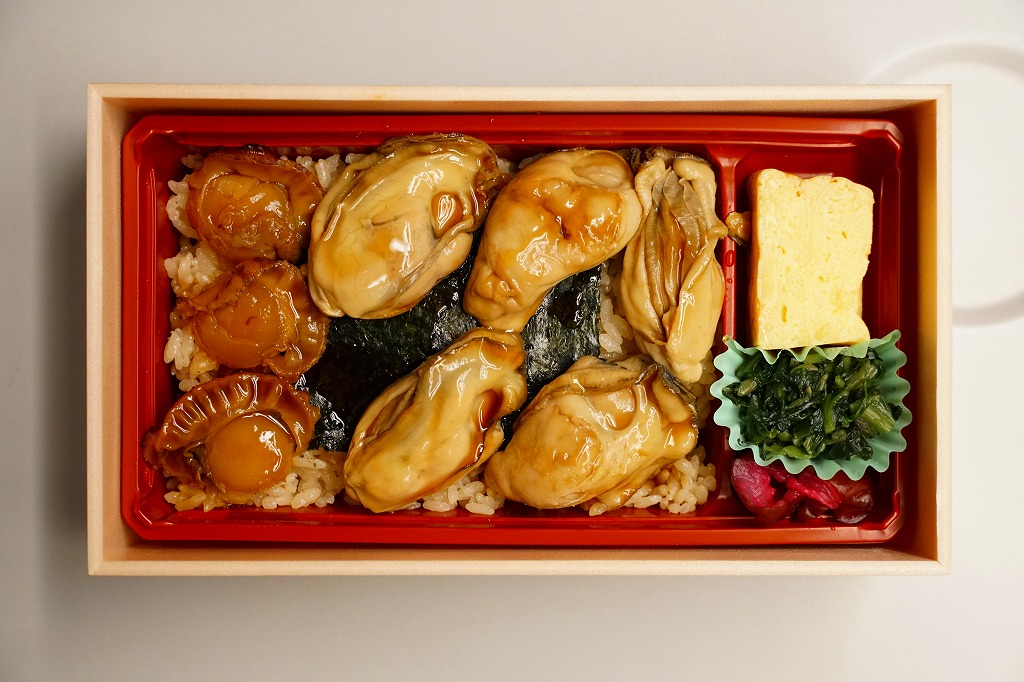 2020(令和2)年12月3日に東海道新幹線の東京、品川、新横浜、名古屋、京都、新大阪の各駅で発売。茶飯を海苔で覆い、ホタテ煮3個とカキ煮5個で埋め尽くし、玉子焼と野沢菜と柴漬けを添える。これほど巨大なカキを使う駅弁を、他に見たことがない。ホタテを含め、タレの味が強く、身の風味は弱めで、都会風の味。予定数量が無くなり次第販売終了とする。以後も12月から1月頃まで販売する冬季限定商品として売られる。