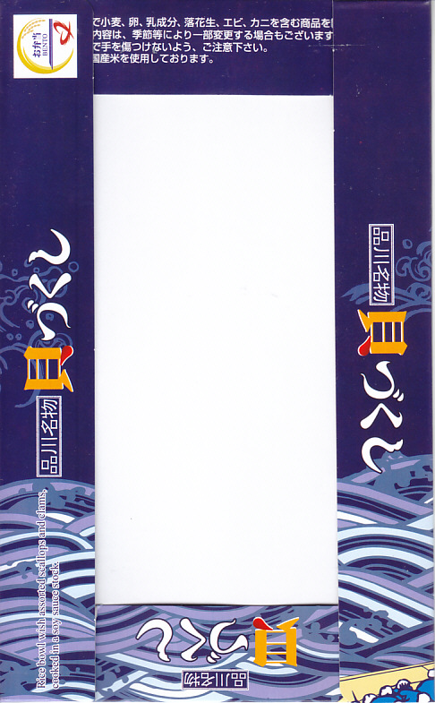 2020(令和2)年10月31日に購入した、品川駅弁のふた。その絵柄は2003年の発売時から上記の2023年のものまで変わらない。この時には「お弁当 BENTO」の文字がある、調製元の駅弁のロゴマークが付いていた。