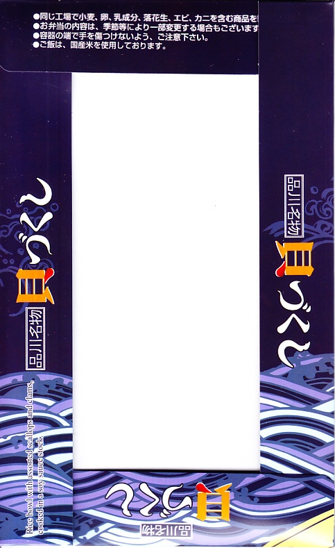2013(平成25)年2月15日に購入した、品川駅弁のふた。上記の2020年のものとほぼ変わらず、発売当時からもほぼ変わらない。変化は英文表記と調製元のロゴマークくらい。