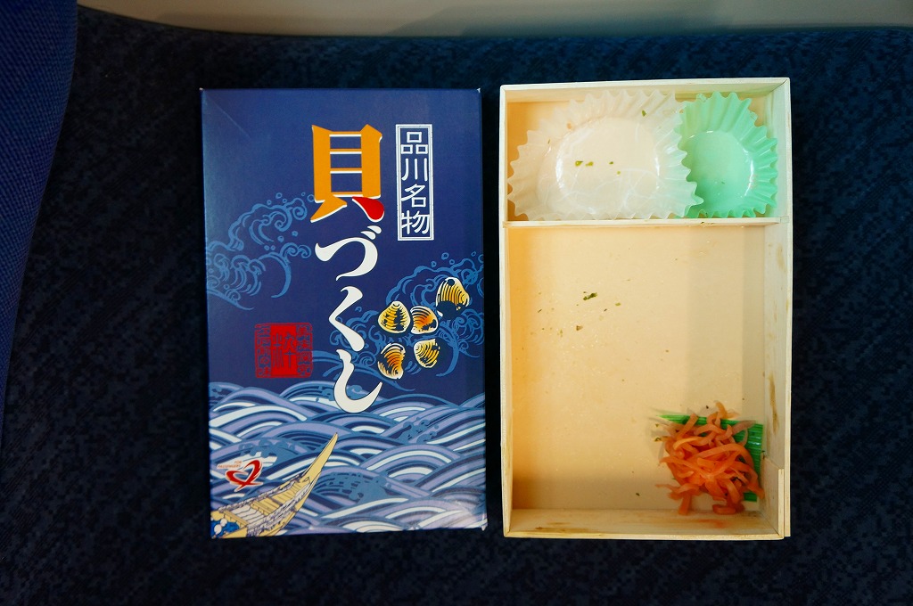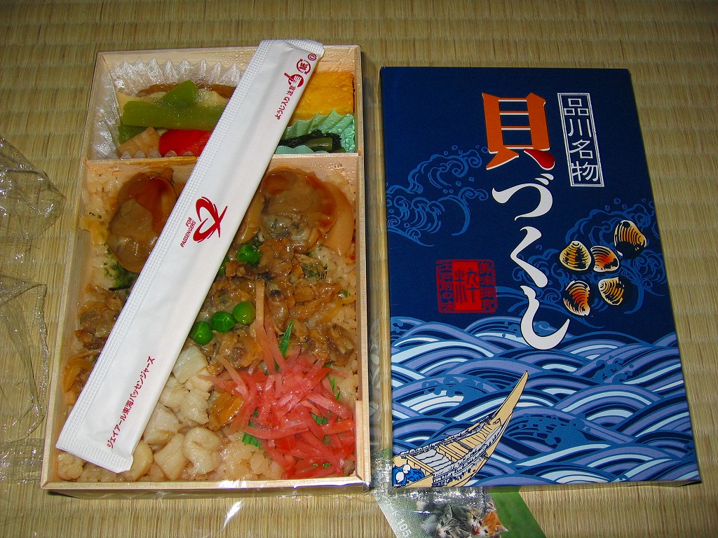 貝は今では品川の名物ではないと思うが、古く江戸時代から大正時代過ぎまで、品川は東京湾に面し、のちに江戸前と呼ばれる魚介類の産地であり、新橋駅までの線路は海上を通っていた。埋め立てで駅や車庫を拡張し、昭和時代には工場や住宅などのために埋立地がさらに沖へと広がり、品川から海と海産物が消えた。