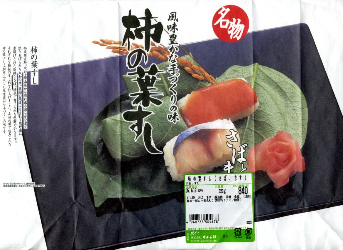 包装紙記載の製造元は、全国各地の百貨店に柿の葉寿司の店舗を構えたり、JR東海や近鉄の主要駅に商品を卸す、どちらかといえば地元密着より遠隔地展開タイプの柿の葉寿司屋さんか。スーパーの駅弁催事でも買ったことがあるが、なぜか会社名が異なる。