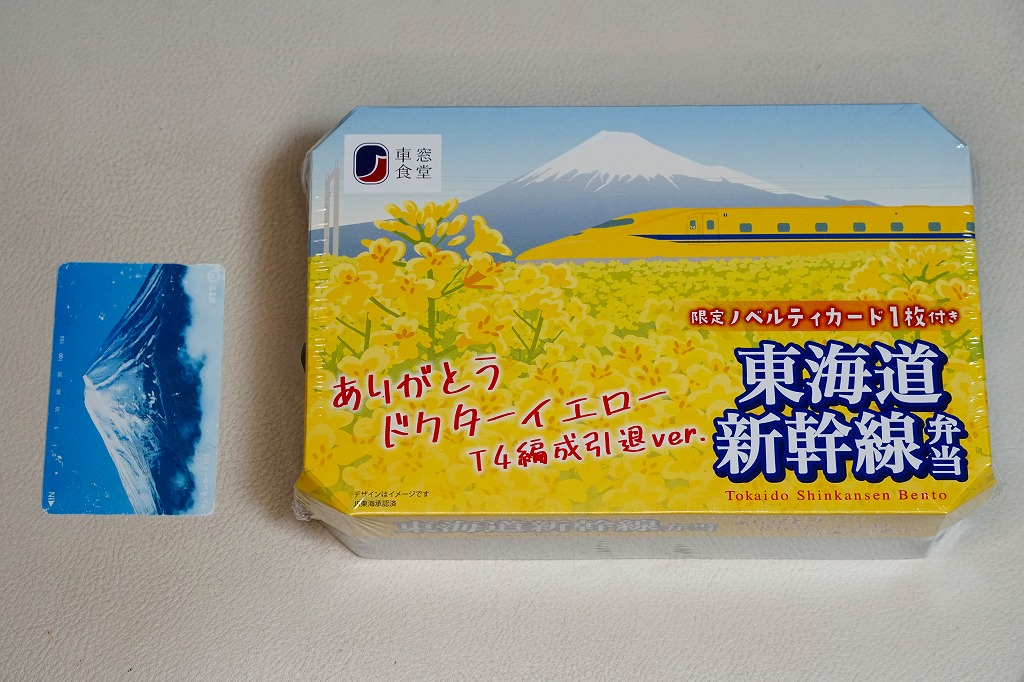 この駅弁は普段の「東海道新幹線弁当」について、あさり御飯の詰め方を変えて、錦糸卵と菜の花と焼きアナゴ煮で覆い、新幹線電車の絵柄のフィルムを貼ることで、ドクターイエローが菜の花をバックに走行している様子を描いた。ふたの絵柄もそれにちなみ、ノベルティカード全4種のうち1枚を添付した。中身はこれ以外に、味噌カツとエビフラと薩摩揚げ、煮物の数々にニシン昆布巻。ふたの裏面には立派なカラーの走行写真を掲載し、視覚でドクターイエローづくしの弁当になった。
