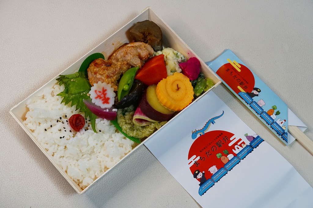 まちだの駅弁の第2回または第2弾は、2024(令和6)年1月6日から8日までの、朝7時30分から9時頃まで販売。内容は日替わりだそうで、1月6日は40個を売ったという。この1月8日版は、日の丸御飯に鶏肉の味噌焼き、れんこんの青のり揚げ、さつまいも、伊達巻き、椎茸や人参などの煮物、ポテトサラダ、小松菜おひたし、赤カリフラワーなどを折り重ねた。今回の販売もネット上で紹介され、開店前に行列ができ、見た目に行楽客でも用務客でもない方々に買われていった。