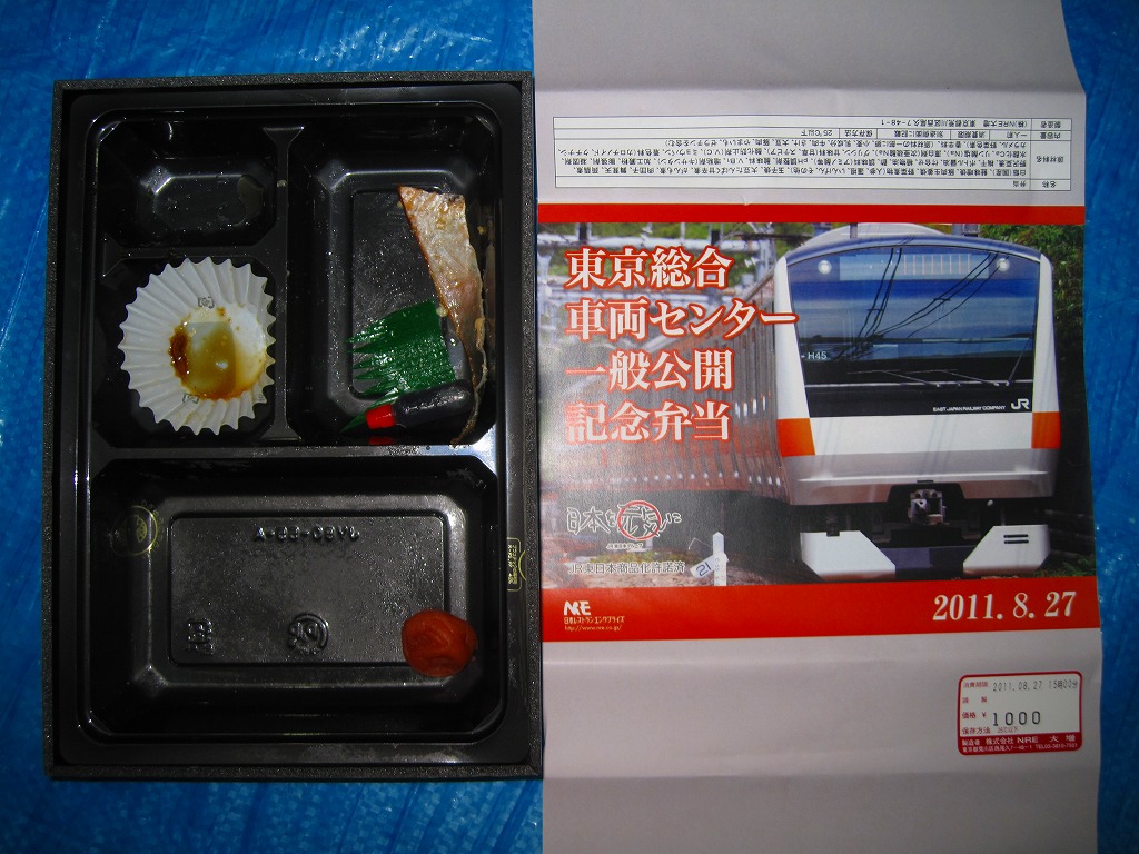 2011(平成23)年8月27日の鉄道工場公開イベントで販売されたお弁当。今年は3種類が用意された。掛紙はJR東日本のE233系電車の中央線バージョン。