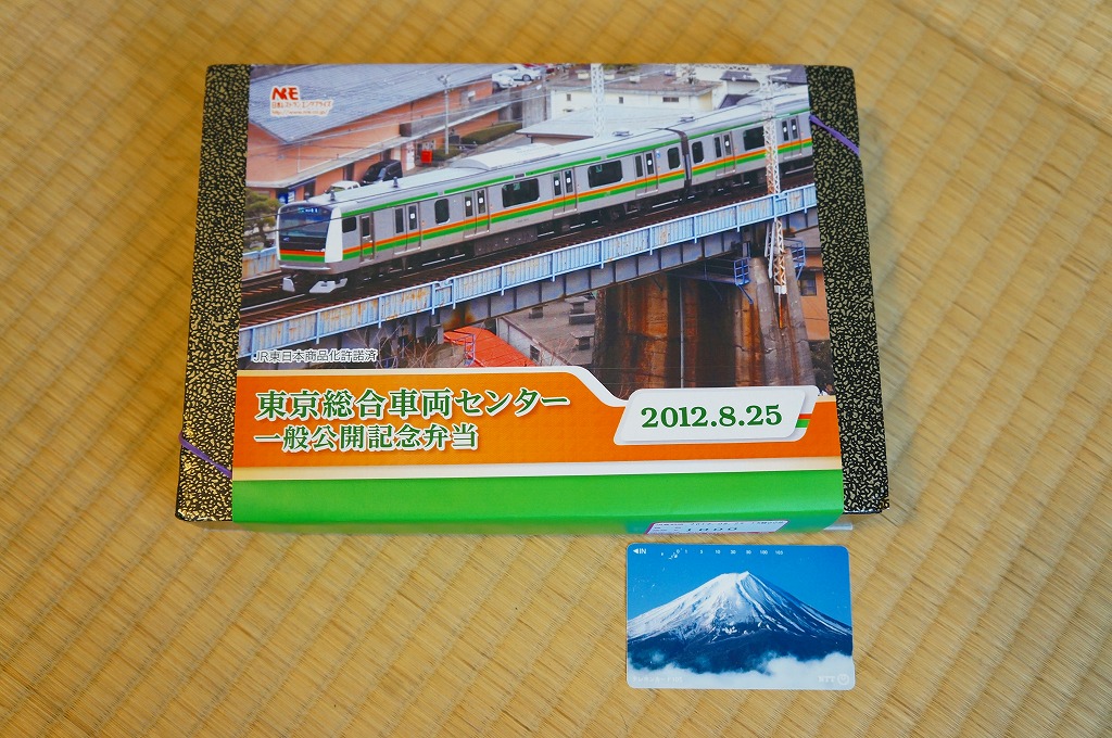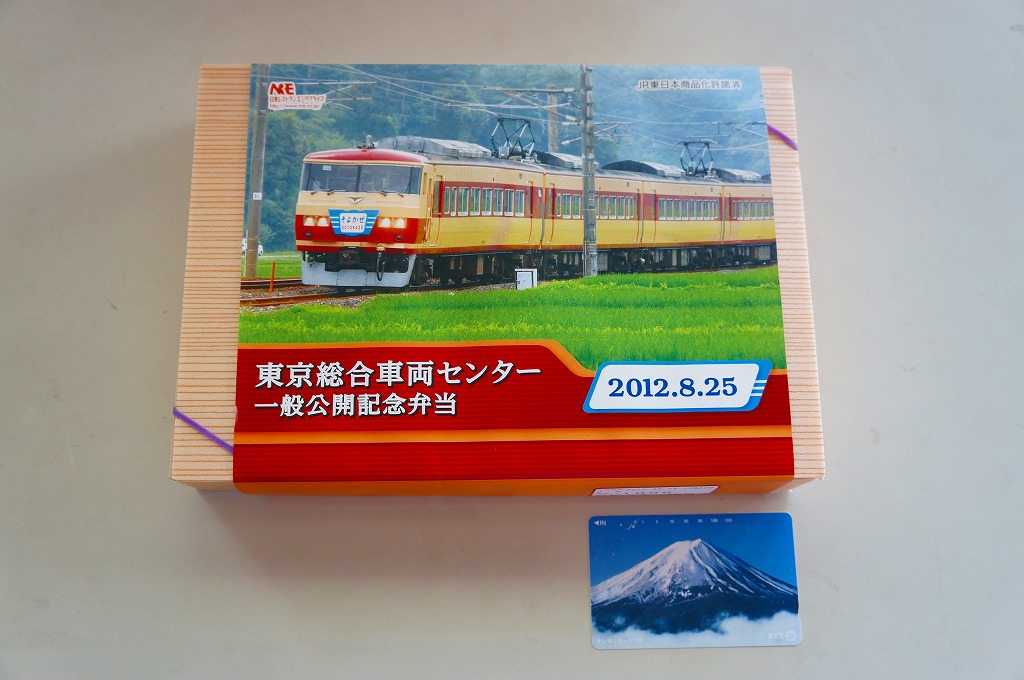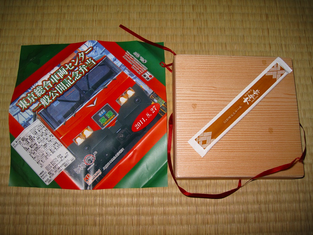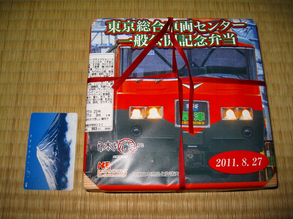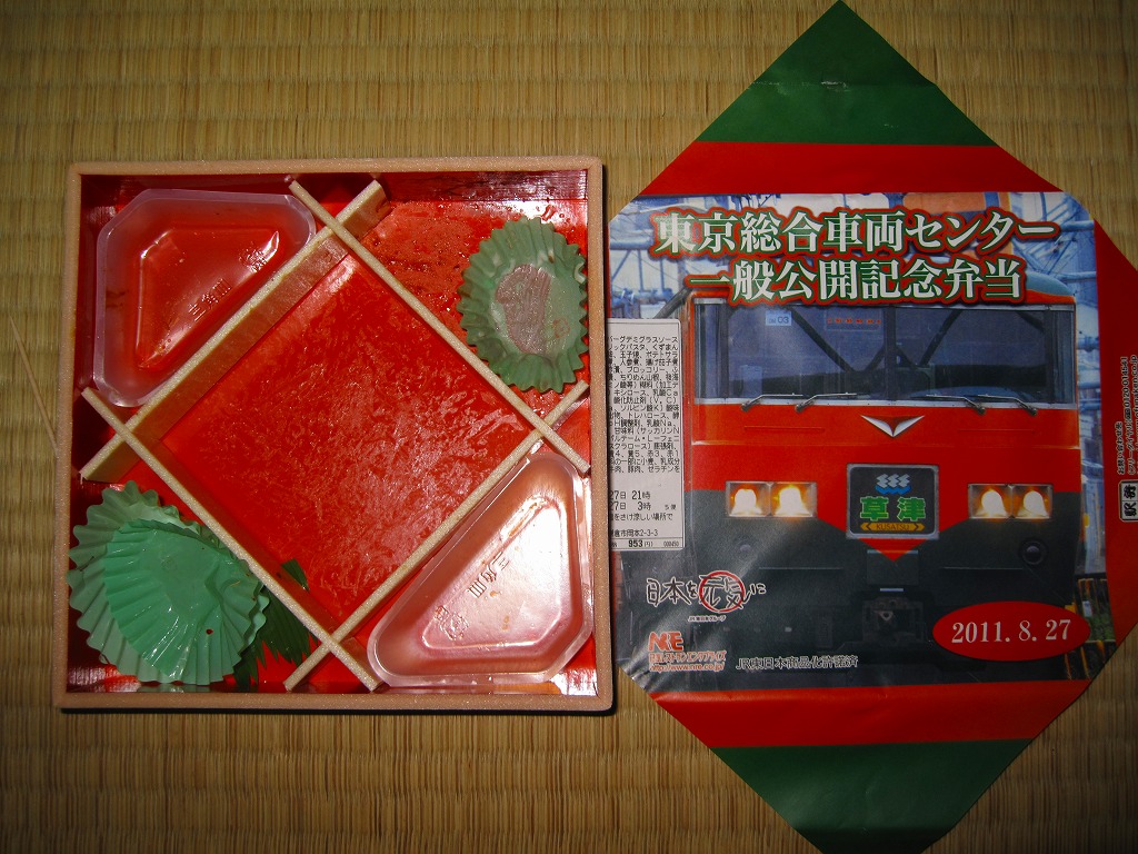 2011(平成23)年8月27日の鉄道工場公開イベントで販売されたお弁当。今年は3種類が用意された。掛紙はJR東日本の185系電車の湘南色バージョン。
