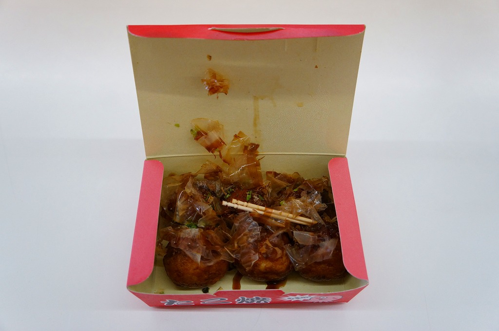 2013(平成25)年8月24日の鉄道工場公開イベントで販売された軽食。おそらくイベント向けの冷凍食品だろう。「箱のまま電子レンジで温めてお召し上がりください」と、ふたに書かれている。駅弁や記念弁当とともに売られていたので、買ってみただけ。