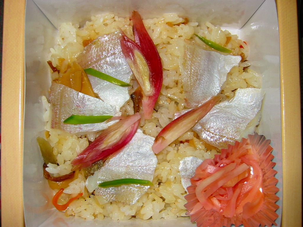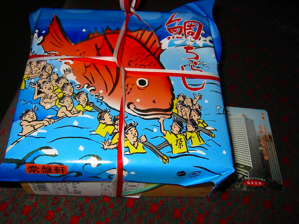 東海道新幹線の品川駅の開業に合わせて、2003(平成15)年10月1日に発売。升のように組み上げた木目印刷のボール紙容器に鯛の掛紙をかけて紅白のひもでしばる。中身はちらし寿司で、混ぜ御飯のような酢飯の上にレンコ鯛とみょうがが載っている。嵩はあるが平面積は少ない容器が写真のように枠が大きく、中身は内容積の半分しか入っていないので、分量はかなり少なめ。味も酸味が前面に出過ぎている感じ。この駅弁はもう販売されていないと思う。