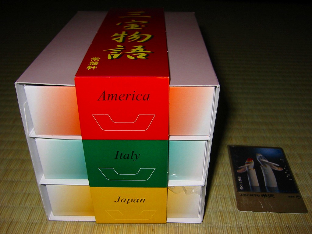 東海道新幹線の品川駅の開業に向けて、2003(平成15)年10月1日に発売。容器はボール紙製の三段引き出しで、とても弁当の容器には見えない。中身は上から「America」「Italy」「Japan」とあり、それぞれチキンや骨付ソーセージやフライドポテト、パスタや生ハムやサラダにオレンジやキウイ、栗と赤飯が入る。味は良いが中身の国籍不明も甚だしく、何を思ってこの構成となったのか聞いてみたい気がする。予約制だがまれに駅弁売店に置かれていることがある。この駅弁はもう販売されていないと思う。